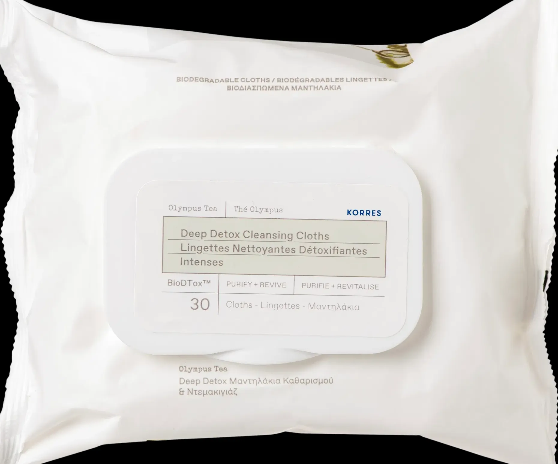 Olympus Tea Deep Detox kasvojenpuhdistusliinat sisältävät raudakkia Kreikan Olympus vuoren rinteiltä sekä BioDTox™ antioksidantteja. Samettisen pehmeät liinat puhdistavat tehokkaasti ja hellävaraisesti epäpuhtaudet ja meikin, myös vedenkestävän ripsivärin, kasvoilta sekä silmänympärysalueelta. Helposti mukana kulkevat puhdistusliinat jättävät iholle raikkaan ja miellyttävän pehmeän tunteen. Olympus Tea kasvojenpuhdistusliinat ovat 100% biohajoavia. Dermatologisesti testattu.