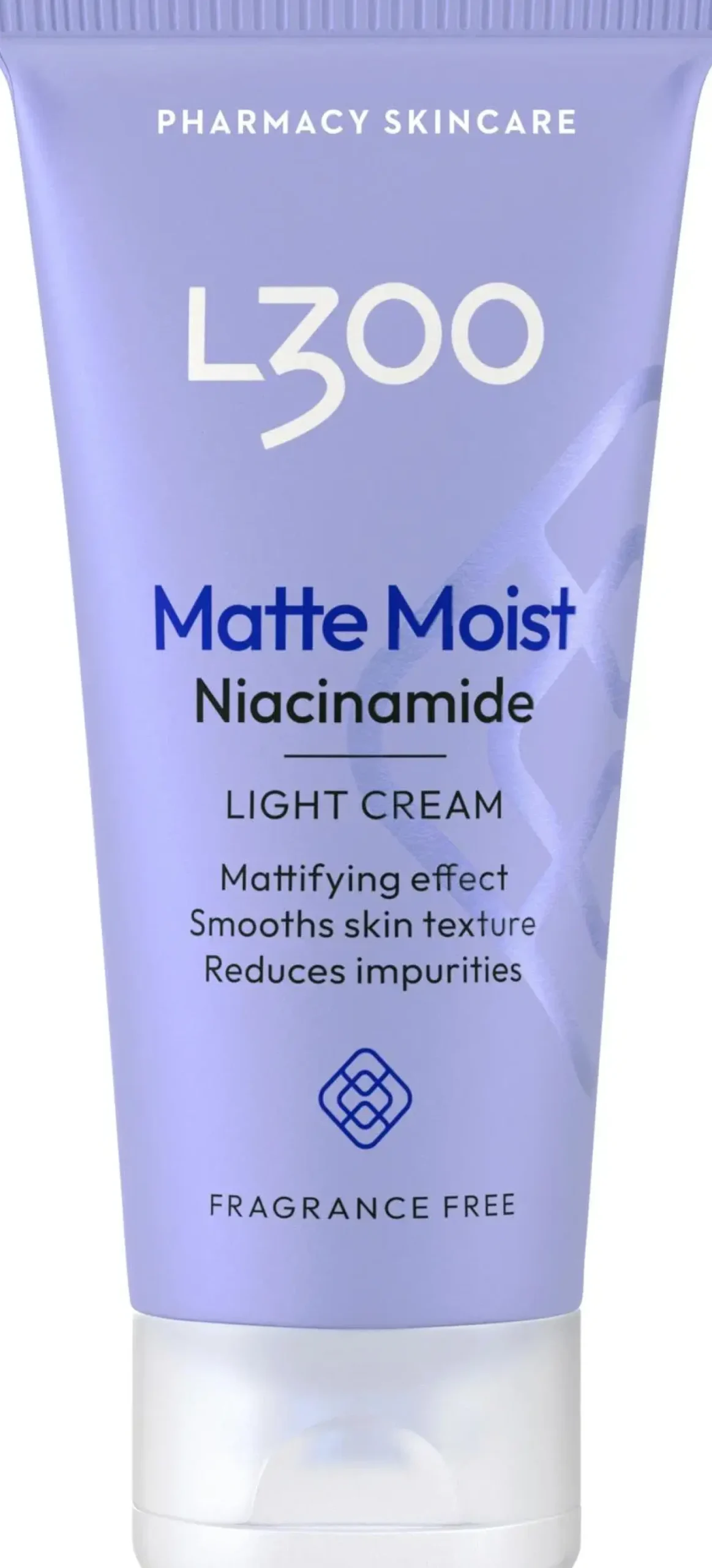 L300 Niacinamide Matte Moist Light Cream on kevyt kasvovoide. Sisältää niasiiniamidia, joka torjuu epäpuhtauksia ja antaa välittömästi mattapintaisen lopputuloksen samalla kun iho tuntuu kosteutetulta. Sisältää myös ihoa rauhoittavaa cicaa (Centella Asiatica), kuten myös skvalaania ja glyseriiniä, joilla on kosteuttava vaikutus. Tuloksena on kirkkaampi ja tasapainoisempi iho, jossa on vähemmän epäpuhtauksia. Dermatologisesti testattu. Hajusteeton. Kehitetty erityisesti rasvoittuvalle/sekaiholle ja testattu myös herkällä iholla. Voidaan käyttää aamuin illoin.