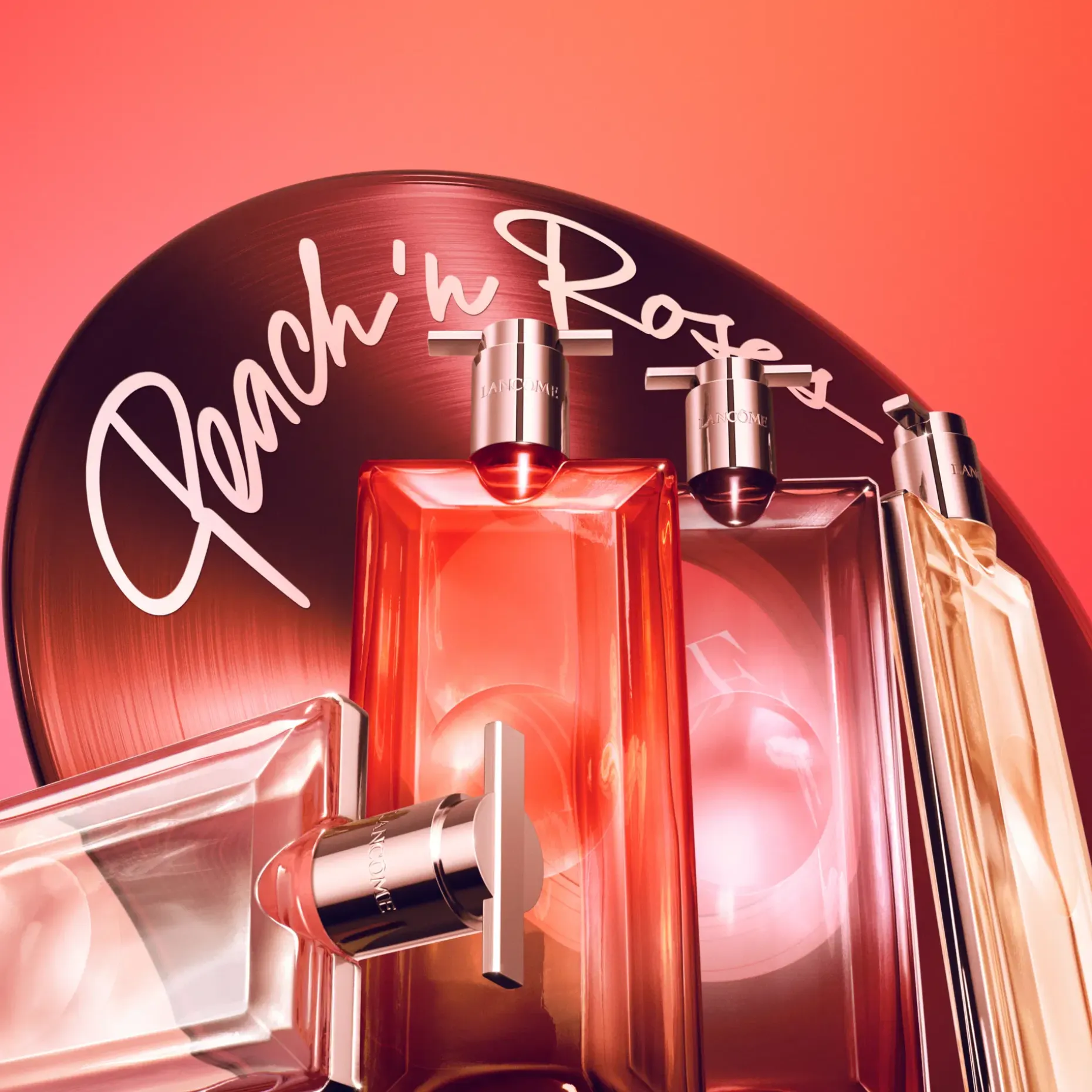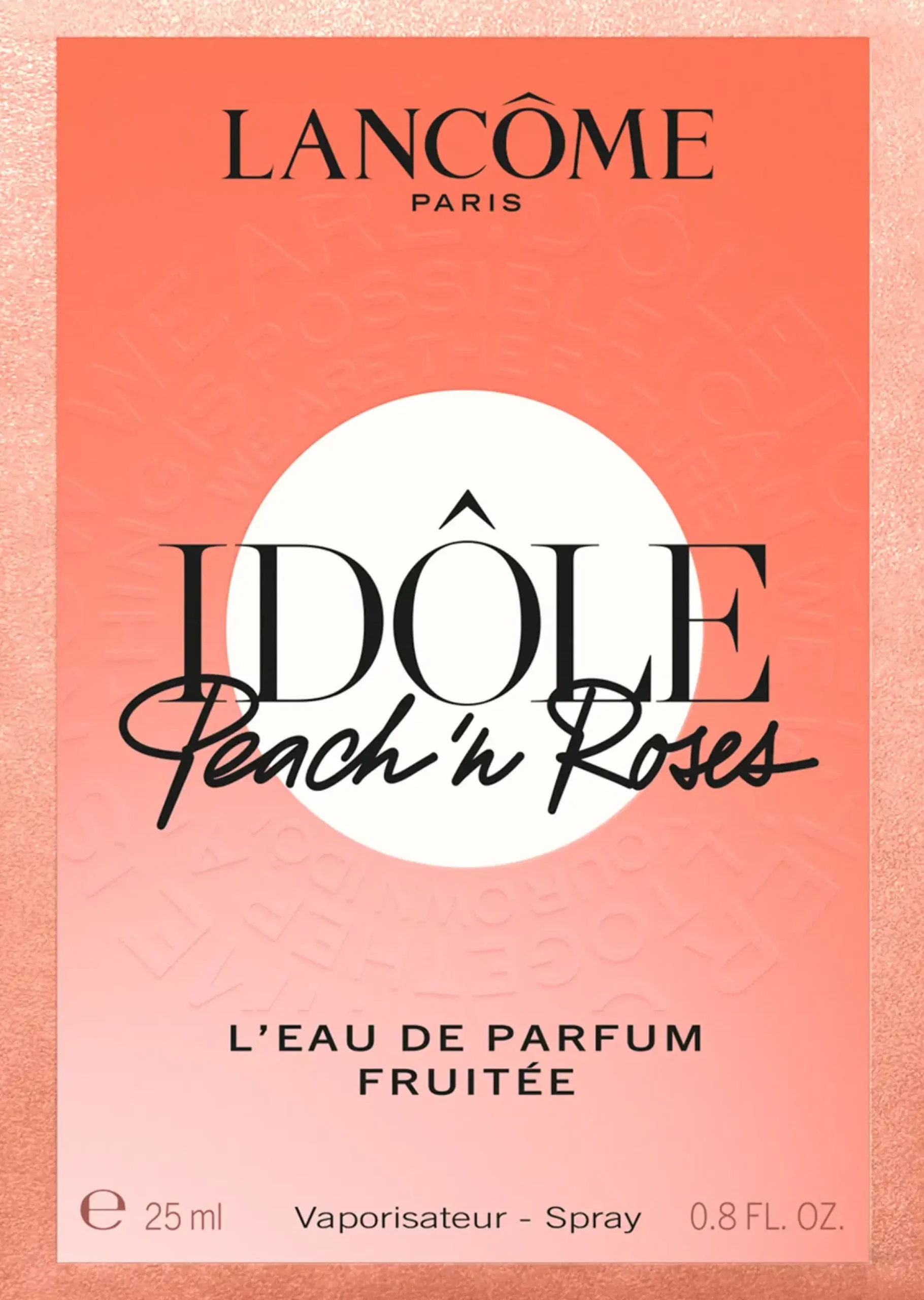Lancôme Idôle Peach’N Roses Eau de Parfum on mehukas, säteilevä tuoksu itsevarmoille naisille, jotka rakastavat iloa ja valoa. Tämä hedelmäinen kukkaistuoksu alkaa pirskahduksella punaisten marjojen tuoksua, joka herättää aistit. Sydäntuoksu paljastaa mehukkaan Peach Orpur™ -uutteen. Tämä Lancômen ensimmäinen luonnollinen persikkauute herättää tunteen auringossa kypsyneen persikan ensi puraisusta. Lopputuoksussa samettinen damaskonruusun absoluutti lisää tuoksuun syvyyttä ja aistillisuutta uudistaen ikonisen Idôle-kukkaistuoksun makealla vivahteella. Tuloksena on pitkäkestoinen, koukuttava tuoksu, joka viipyilee kuin lämmin, kullanhohtoinen auringonlasku. • Mehevä hedelmäinen kukkaistuoksu, jossa tuoksuvat Peach Orpur™ ja damaskonruusu. • Avautuu eloisalla punaisten marjojen tuoksulla, joka tuo säihkyvää raikkautta. • Pitkäkestoinen tuoksu, joka on suunniteltu itsevarmoille, moderneille naisille. • Ihanteellinen jokapäiväiseen käyttöön tai ylelliseksi lahjaksi. • Hehkuvassa persikkaisen oranssissa pullossa, joka säteilee kuin aurinko.