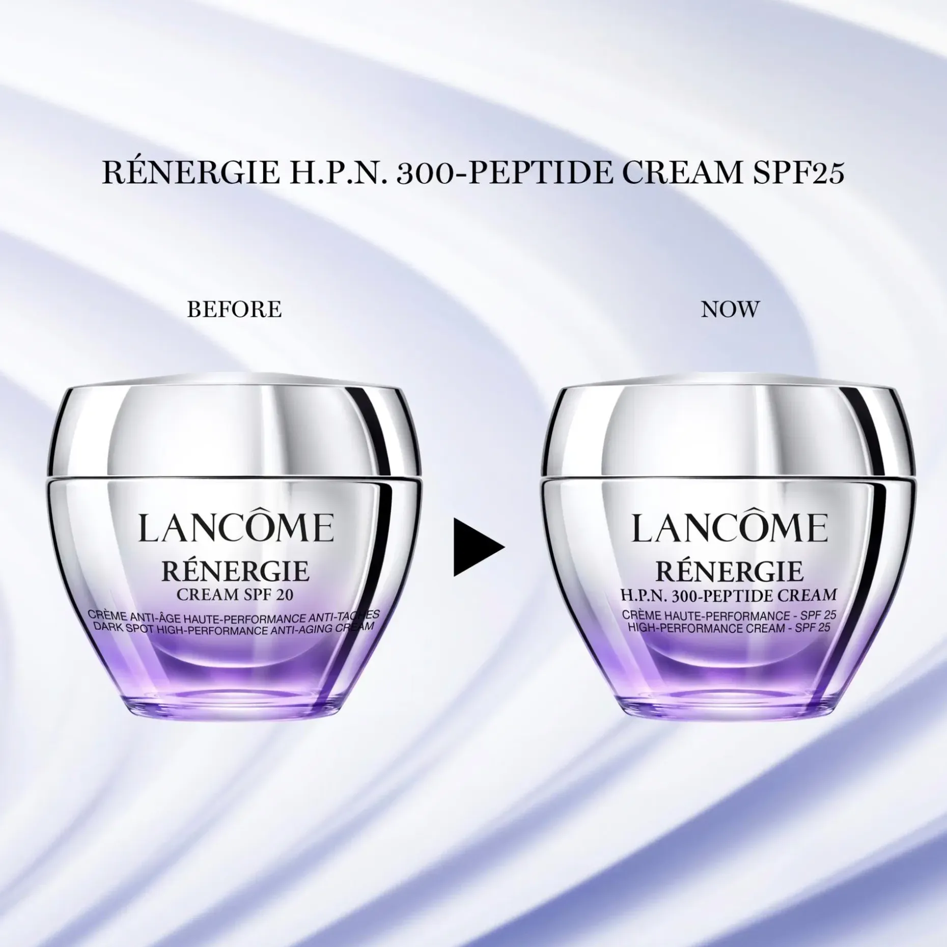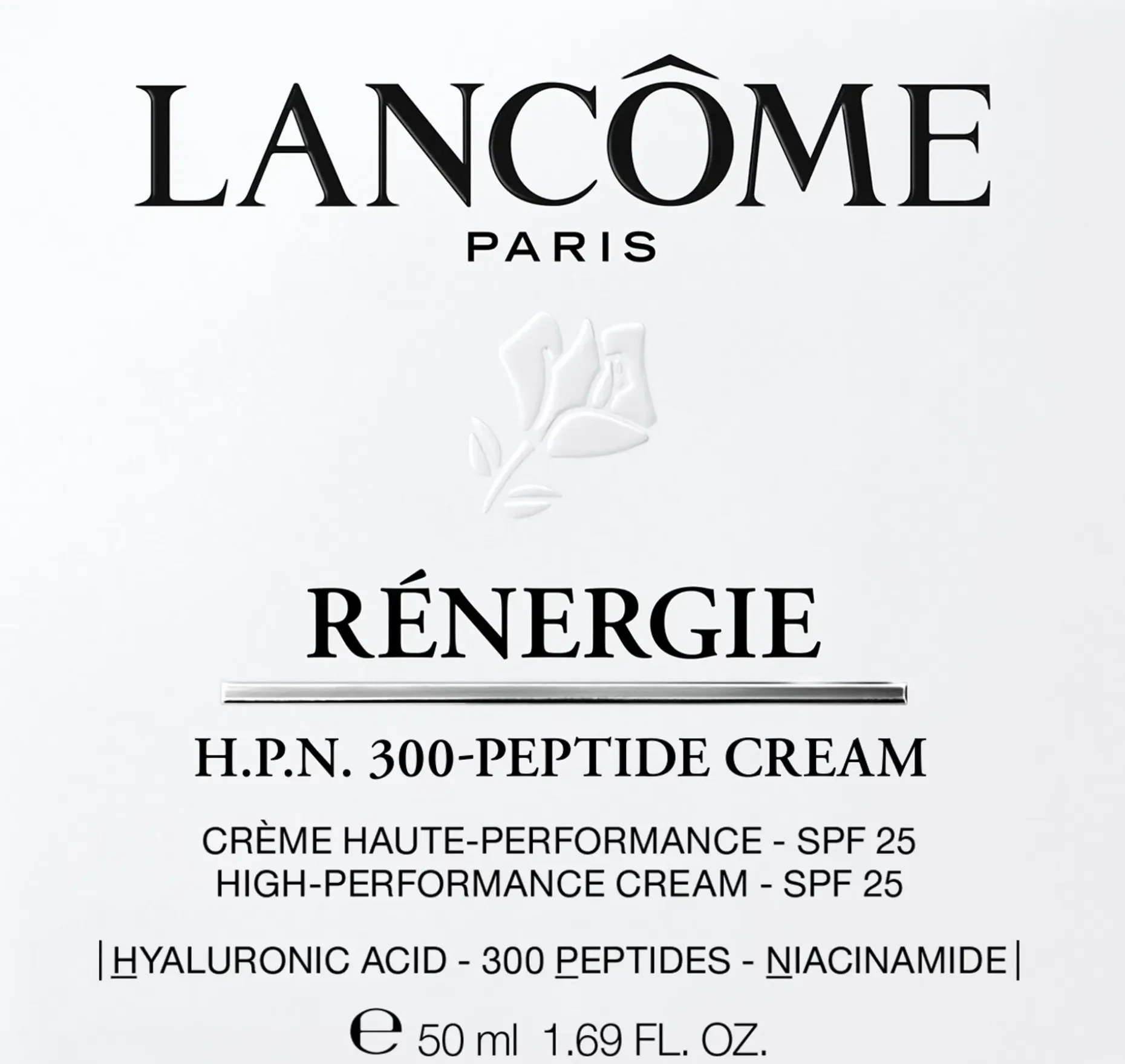 RÉNERGIE H.P.N. 300-PEPTIDE CREAM SPF25 on tehokas kiinteyttävä päivävoide, jossa yhdistyy 300 erilaista peptidiä – kaikkien aikojen korkein pitoisuud Lancômella. Voide sisältää UVA- ja UVB-suodattimia, jotka auttavat suojaamaan ihoa auringon säteiltä.