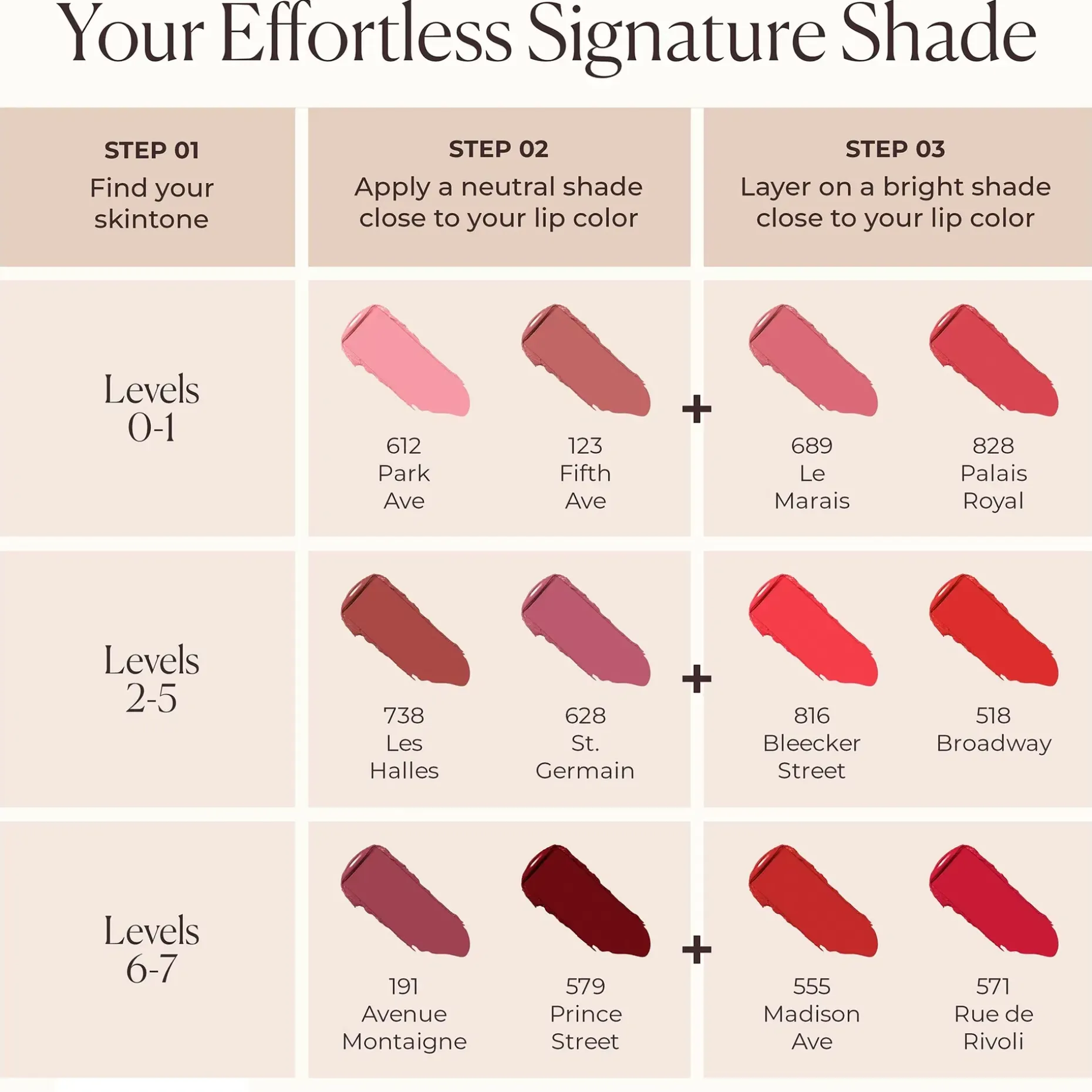 Saatavana 12 uudelleen täytettävää herkullista sävyä, jotka vaihtelevat arkisista nudesävyistä rohkeisiin punaisiin joka tilanteeseen ja ihonväriin.