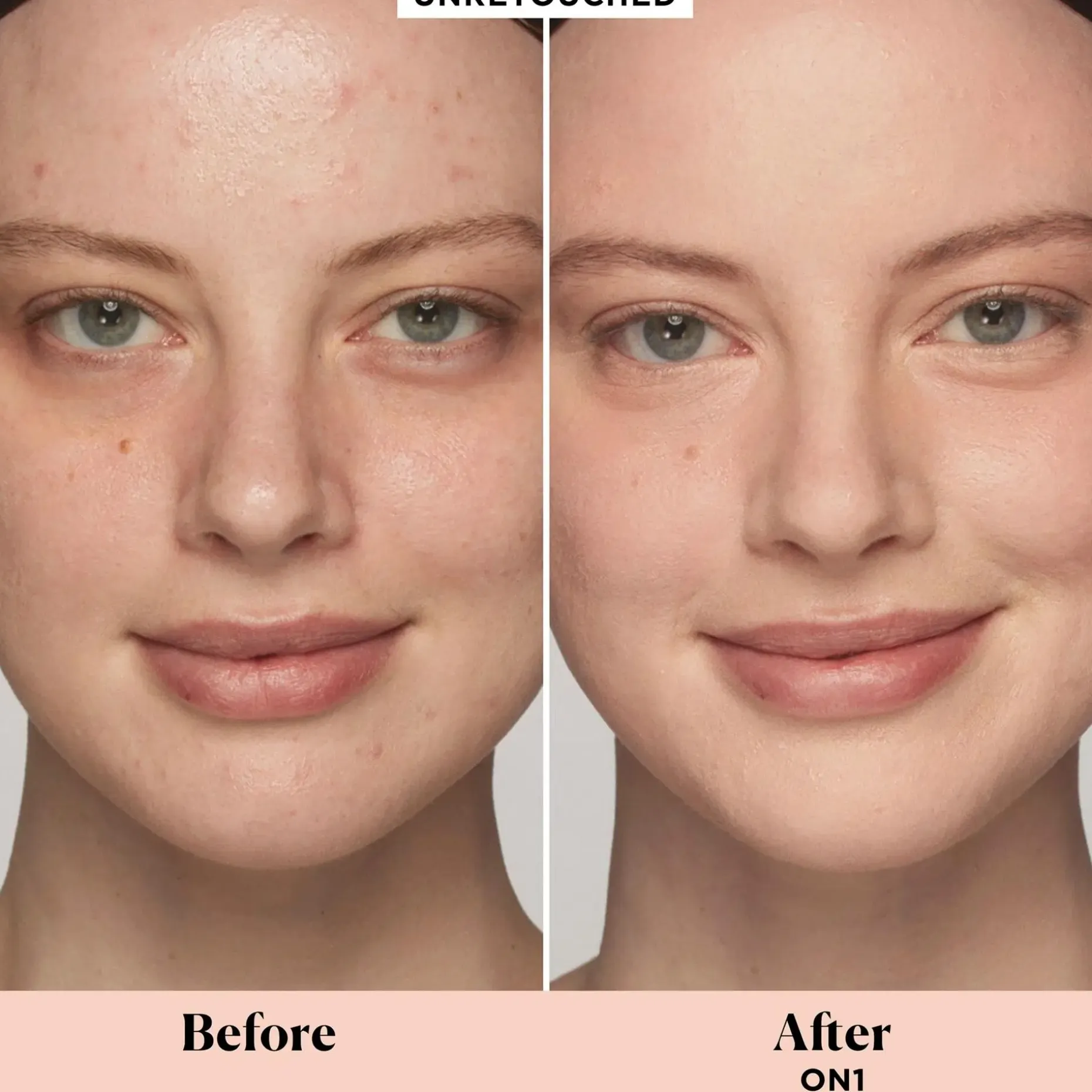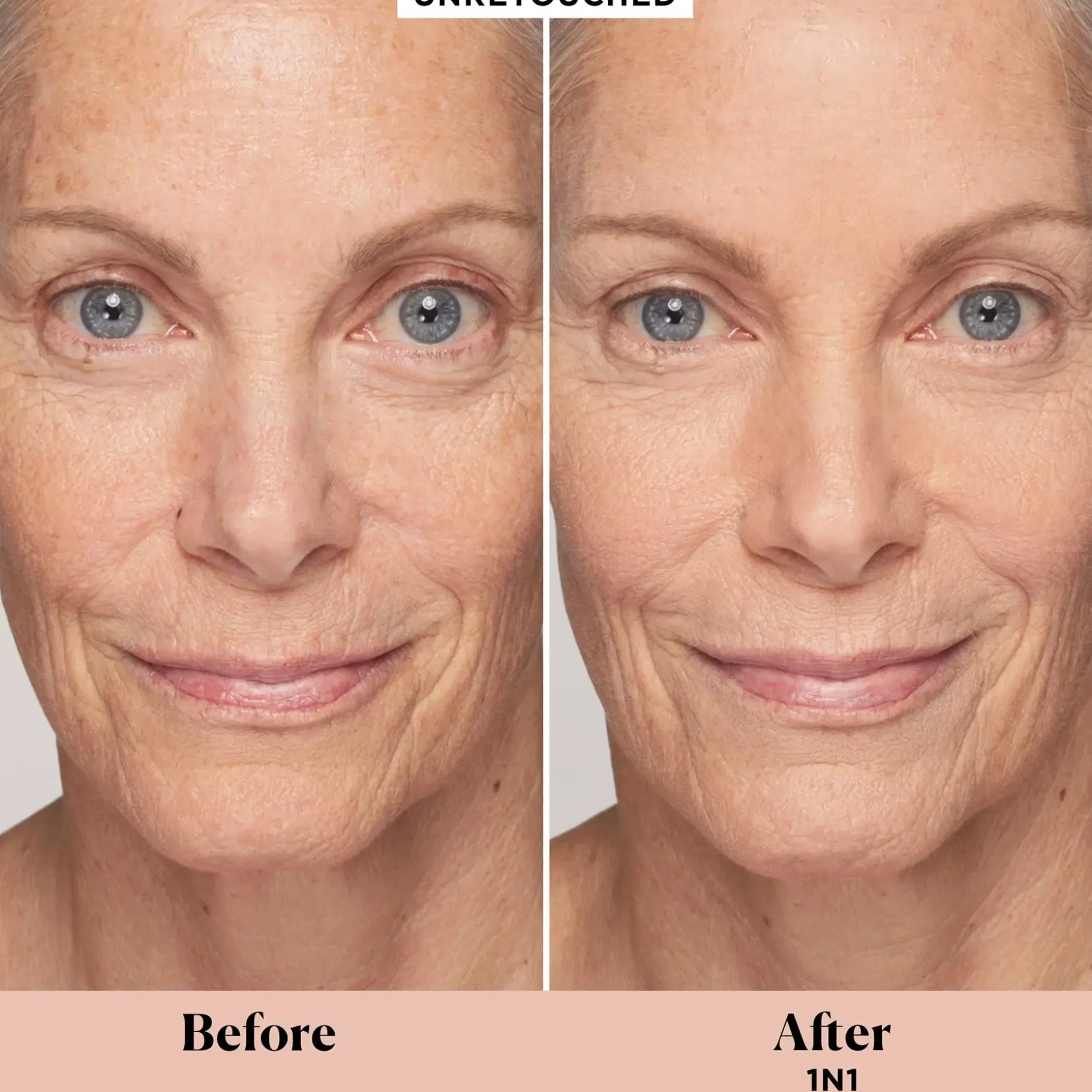 Seerumilla tehostettu peitevoide jättää luonnollisen ja tasaisen peittävyyden. Pitkäkestoinen, vedenkestävä ja juonteita tasoittava peitevoide peittää epätasaisuudet tehokkaasti ja kirkastaa ihon sävyä samalla kosteuttaen, mikä saa ihon näyttämään kauniimmalta jo kahdessa viikossa.