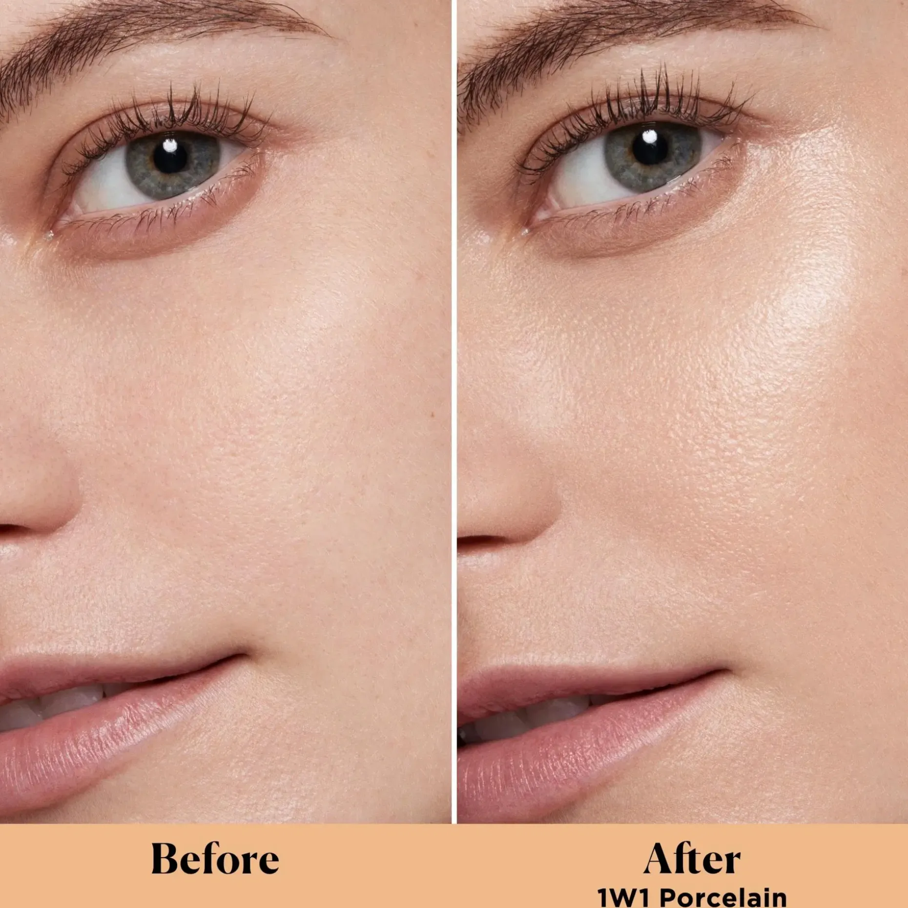 Parhaan lopputuloksen saat, kun käytät ensin suosimaasi Laura Mercier Pure Canvas Primer -pohjustusvoidetta. Laura suosittelee aloittamaan levittämisen kasvojen ulkoreunoilta ja etenemään nenää kohti. Vältä levittämästä paksua kerrosta tuotetta kasvojen ääriviivoihin.