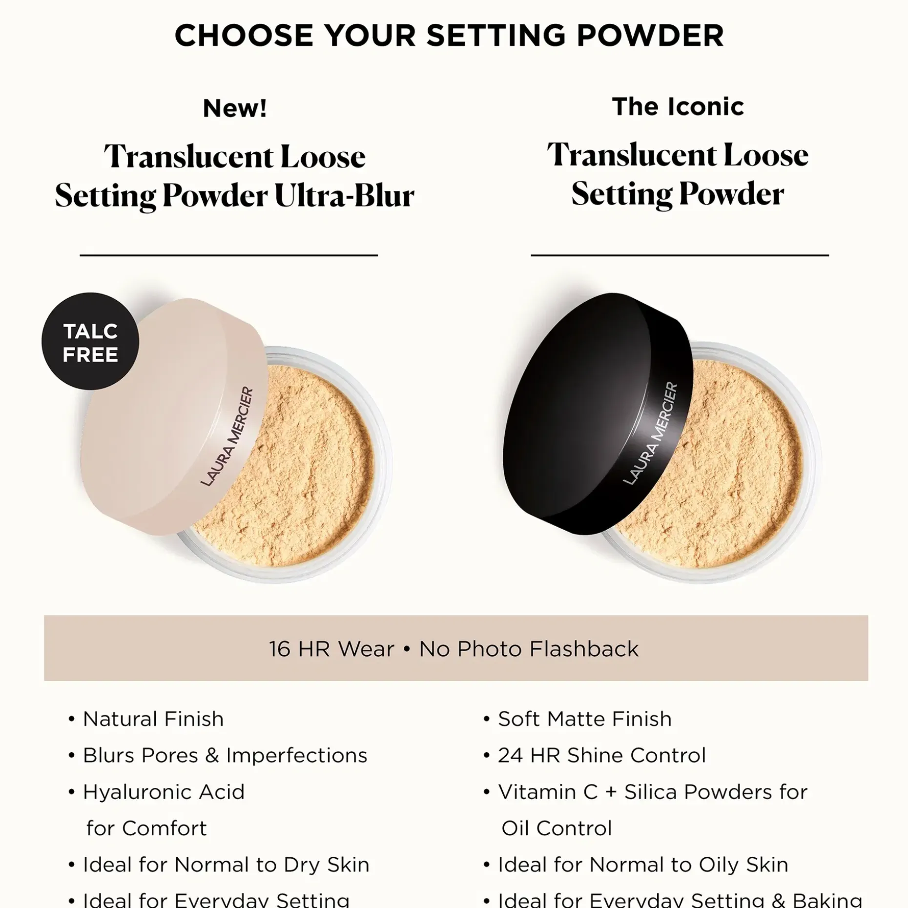 Kulttisuosikki Laura Mercierin ”Best in beauty” Translucent Loose Setting Powder on rakastettu sen 16 tunnin keston ja ikonisen pehmeän lopputuloksen ansiosta.