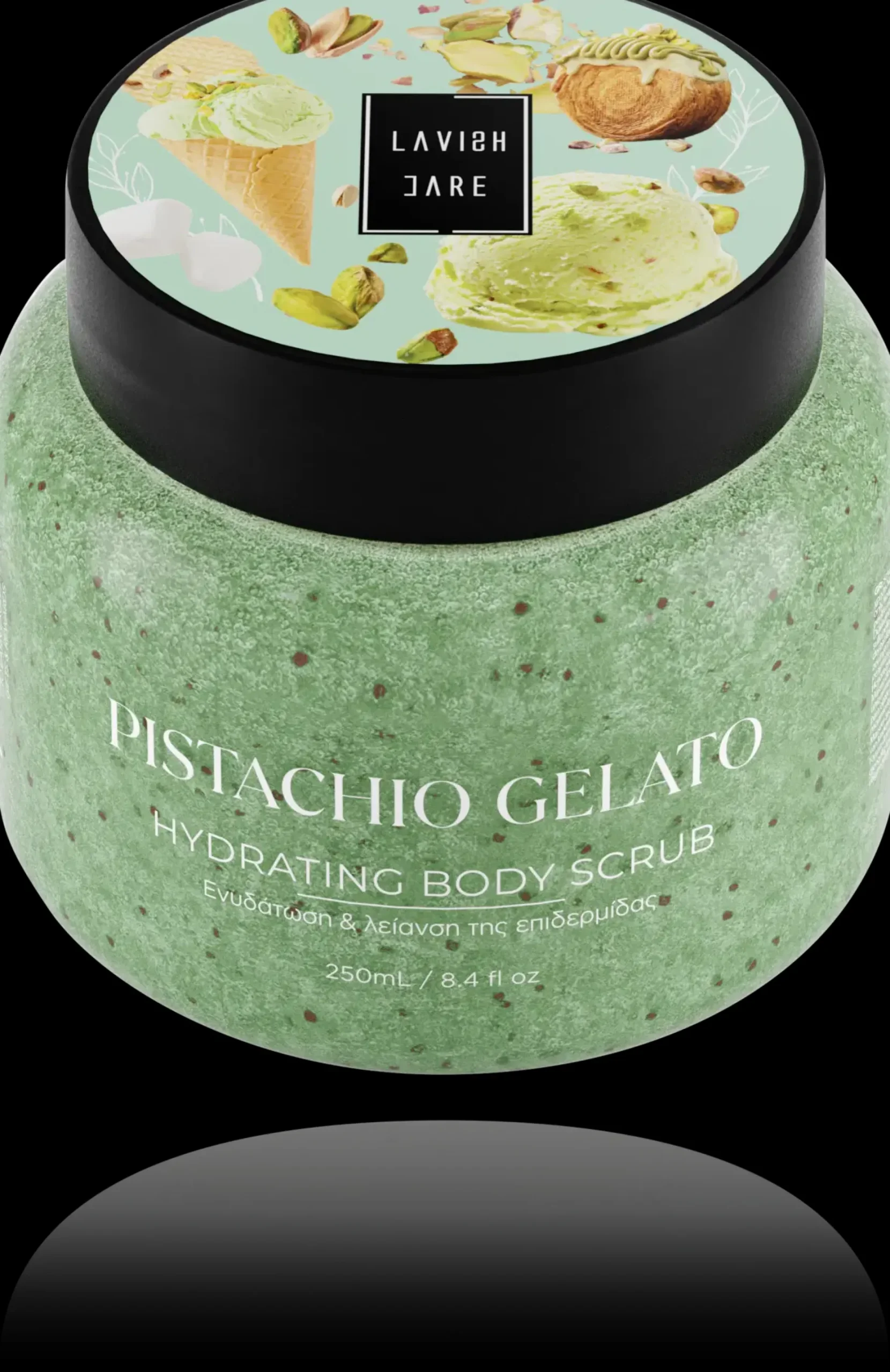 Pistachio Gelato – vartalokuorinta puhdistaa ja uudistaa ihoa jättäen sen pehmeäksi ja kosteutetuksi. Ihana pistaasijäätelön tuoksu. Parhaan tuloksen saamiseksi suositellaan käytettäväksi 2-3 kertaa viikossa. Ei sisällä parabeeneja, GMO, silikoneja tai mineraaliöljyjä.