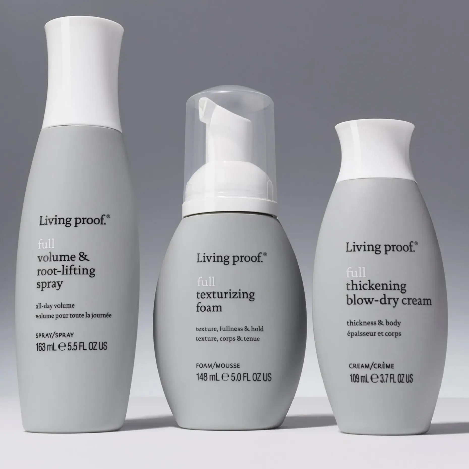 Living Proof Full Volume & Root-Lifting Spray on tuuheutta antava tyvikohotussuihke. Antaa kevyen pidon, joka kestää koko päivän. Lisää luonnollista volyymia, kiiltoa ja kimmoisuutta. Antaa lämpösuojan 232°C.