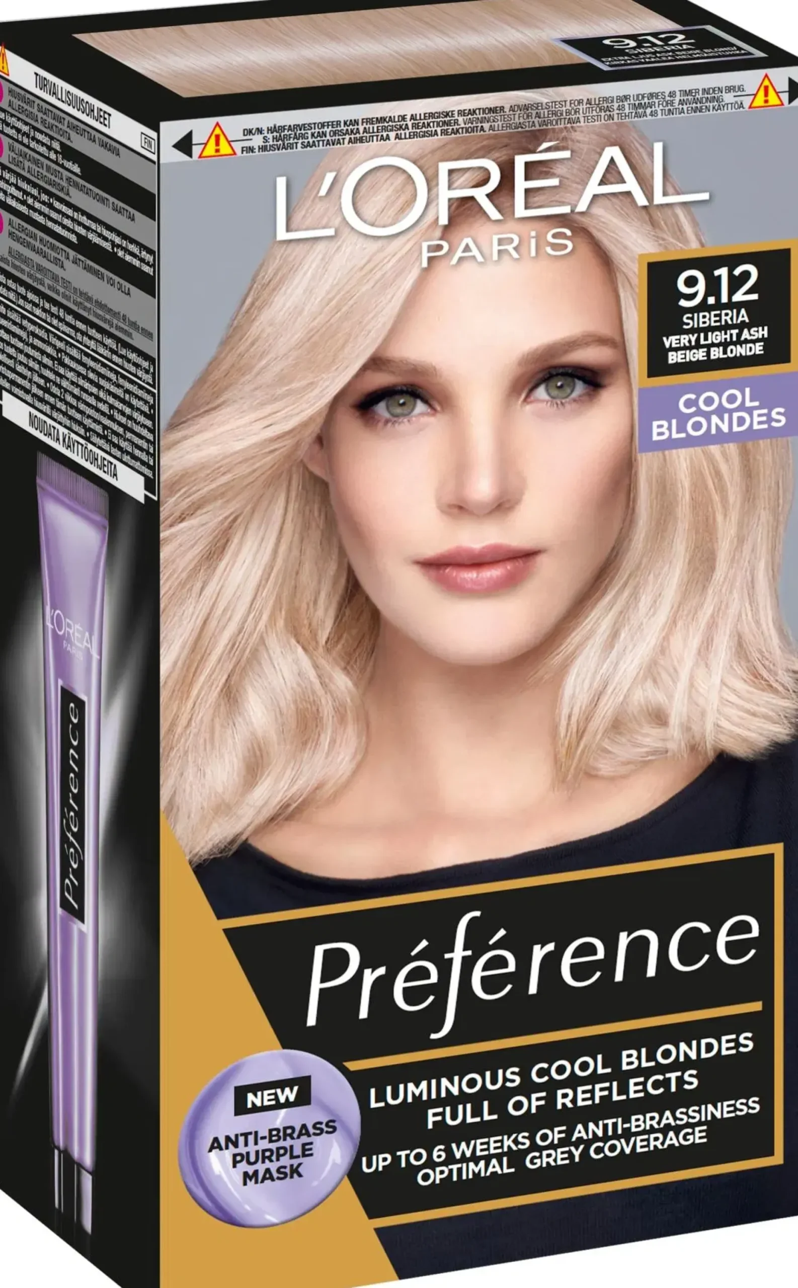 KIILTÄVÄ KYLMÄ VAALEA SÄVY TÄYNNÄ VIVAHTEITA Läpikuultava geelikoostumus antaa hiuksillesi kiiltävän kylmän vaalean värin täynnä vivahteita ja tehostaa luonnollista hiusväriäsi. Koe Preference Cool Blond valoa heijastavat väripigmentit, joilla saat hiuksiisi kiiltävän ja upean lopputuloksen. Ravitseva hoitoaine keltaisuutta vastaan, jonka koostumus sisältää violetinvärisiä pigmenttejä, neutralisoi keltaisia vivahteita hiuksissa viikkosta toiseen. Käytä hoitoainetta säilyttääksesi kylmä vaalea väri jopa 6 viikkoa. Koostumus sisältää ylellisiä kukkaisöljyjä. Kylmiä värejä tuhkan ja helmiäisen vivahteilla, jotka antavat hiuksille kylmän ja kirkkaan vaalean lopputuloksen. PEITTÄÄ HARMAAT OPTIMAALISESTI. Noudata käyttöohjeita.