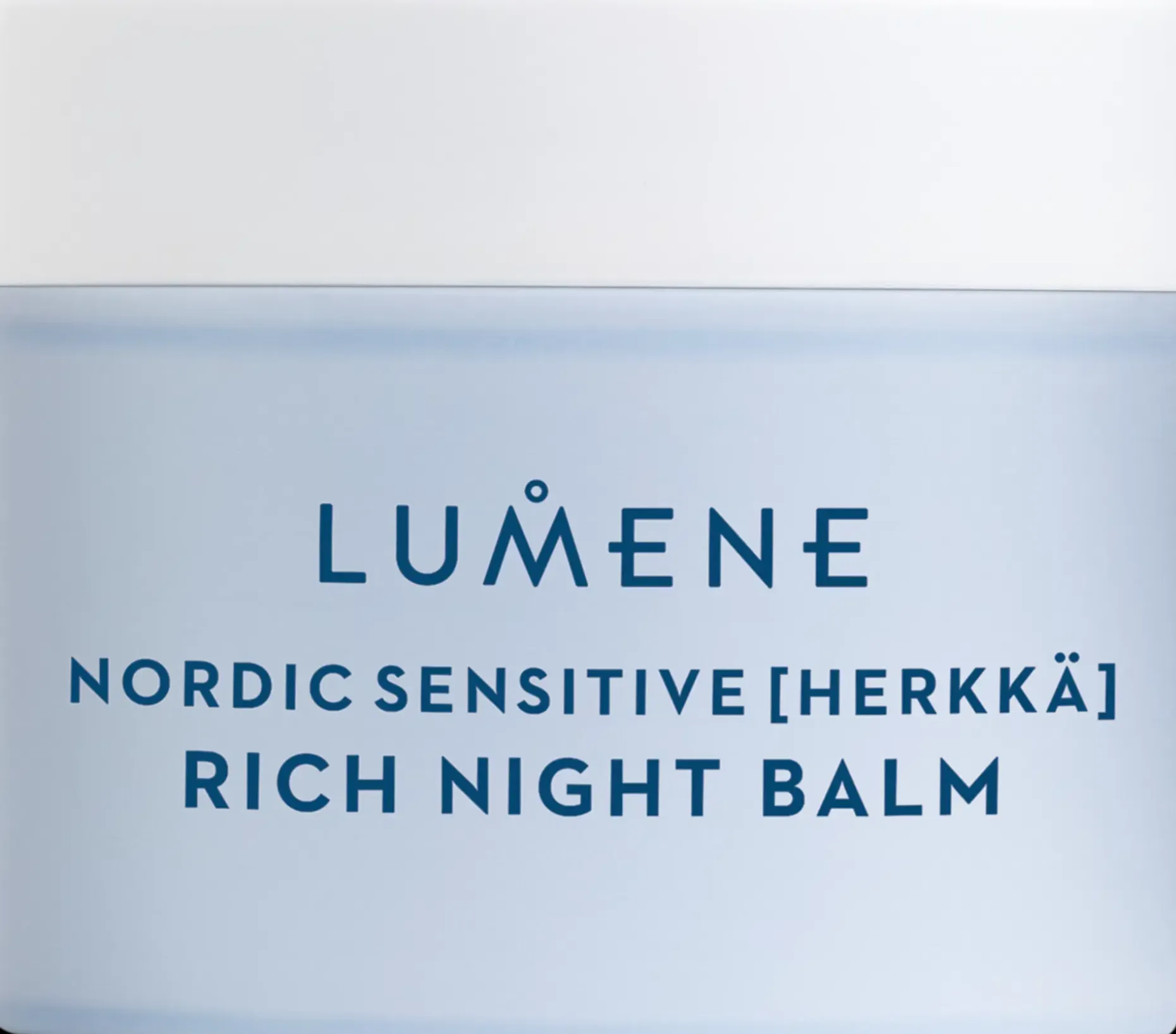 LUMENE Nordic Sensitive [Herkkä] Rauhoittava & ravitseva yövoide on keramideilla tehostettu yövoide kaikille herkille ihotyypeille. Hyödyntämällä ihon suojakerrosta tukevaa pohjoista kaurakeramidia ja rauhoittavaa mustikan siemenöljyä, tämä täyteläinen koostumus rauhoittaa välittömästi, kosteuttaa tehokkaasti ja auttaa ihon suojakerrosta palautumaan yön aikana. Aamulla herätessä iho näyttää hyvinvoivalta ja tuntuu rauhoittuneelta.