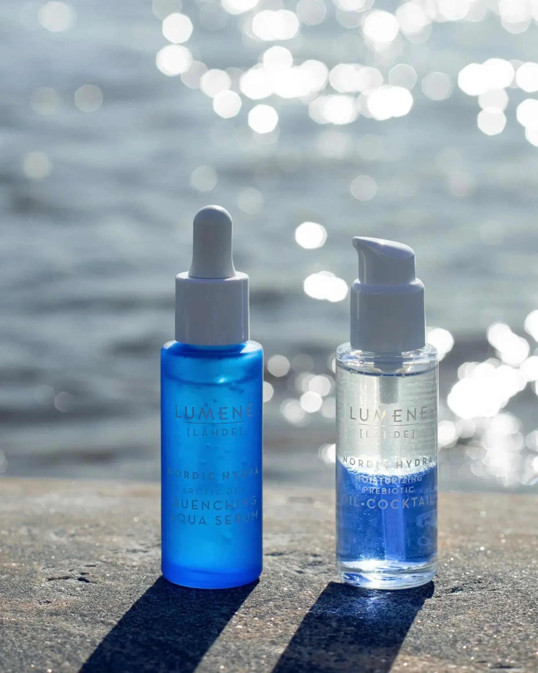 Ravitseva kaksiosainen tehohoito täydentää ihon omaa suojamuuria ja sen luontaista mikrobiomia. Innovatiivista, prebioottista suomalaista kauraksylitolia sekä kosteuttavaa pohjoista luomu koivunmahlaa, puhdasta pohjoista lähdevettä ja hoitavaa pohjoista mustikansiemenöljyä sisältävä Lumene LÄHDE Kosteuttava prebiootti-tehohoito kosteuttaa ihoa 24 tunnin ajan. Sopii erityisesti kuivalle ja pintakuivalle iholle.