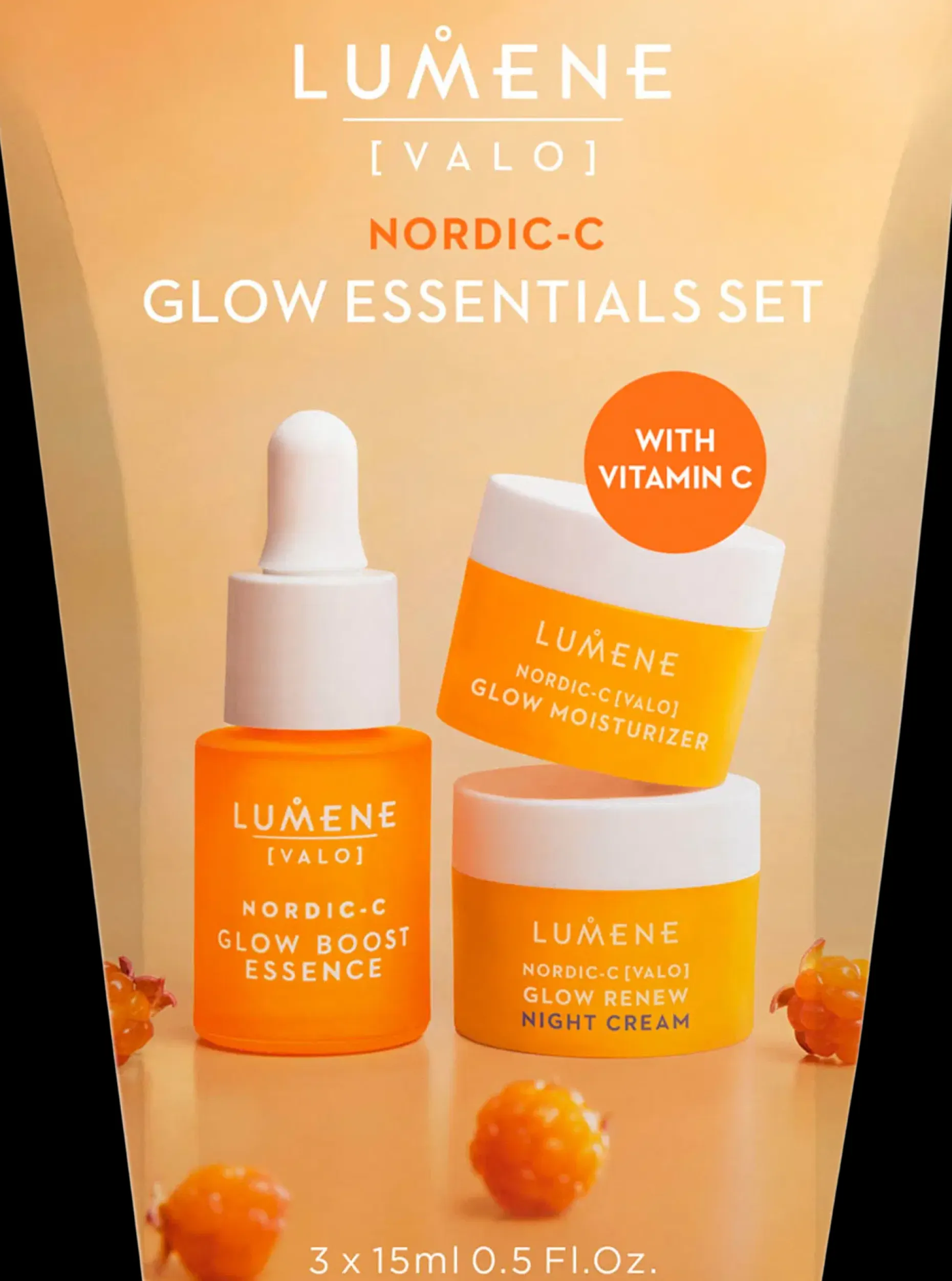 Glow Boost Essence: AQUA (WATER), PROPANEDIOL, BUTYLENE GLYCOL, GLYCERIN, ASCORBYL GLUCOSIDE, RUBUS CHAMAEMORUS (CLOUDBERRY) FRUIT EXTRACT, RUBUS CHAMAEMORUS (CLOUDBERRY) SEED EXTRACT, PHENOXYETHANOL, BETAINE, PEG-40 HYDROGENATED CASTOR OIL, SACCHARIDE ISOMERATE, XYLITYLGLUCOSIDE, SODIUM POLYGLUTAMATE, SODIUM HYALURONATE, XANTHAN GUM, ANHYDROXYLITOL, TREHALOSE, UREA, DISODIUM EDTA, HYDROLYZED HYALURONIC ACID, SODIUM HYDROXIDE, MALTODEXTRIN, XYLITOL, ETHYLHEXYLGLYCERIN, SODIUM CITRATE, ADENOSINE, PENTYLENE GLYCOL, SERINE, CITRIC ACID, ALGIN, CAPRYLYL GLYCOL, DISODIUM PHOSPHATE, GLYCERYL POLYACRYLATE, PULLULAN, POTASSIUM PHOSPHATE, LIMONENE, CITRUS AURANTIUM PEEL OIL, TETRAMETHYL ACETYLOCTAHYDRONAPHTHALENES, LINALOOL, CITRAL, PARFUM (FRAGRANCE) —– Glow Renew Night Cream: AQUA (WATER), PRUNUS AMYGDALUS DULCIS (SWEET ALMOND) OIL, CETEARYL ALCOHOL, OLUS (VEGETABLE) OIL, PROPANEDIOL, GLYCERIN, OCTYLDODECYL MYRISTATE, VITIS VINIFERA (GRAPE) SEED OIL, HYDROGENATED ETHYLHEXYL OLIVATE, HYDROGENATED OLIVE OIL UNSAPONIFIABLES, CETYL PALMITATE, CETEARYL GLUCOSIDE, ASCORBYL TETRAISOPALMITATE, NIACINAMIDE, SILICA, SODIUM STEAROYL GLUTAMATE, RUBUS CHAMAEMORUS (CLOUDBERRY) SEED OIL, RUBUS CHAMAEMORUS (CLOUDBERRY) SEED EXTRACT, OLEYL ERUCATE, HYDROGENATED OLIVE OIL, PENTYLENE GLYCOL, SACCHARIDE ISOMERATE, HEPTYL UNDECYLENATE, DICAPRYLYL ETHER, OLEA EUROPAEA (OLIVE) FRUIT OIL, SODIUM POLYGLUTAMATE, TOCOPHERYL ACETATE, MALTODEXTRIN, ETHYLHEXYLGLYCERIN, HYDROXYACETOPHENONE, MICROCRYSTALLINE CELLULOSE, XANTHAN GUM, ACACIA SENEGAL GUM, GLYCINE SOJA (SOYBEAN) OIL, ALLANTOIN, SODIUM HYALURONATE, OLEA EUROPAEA (OLIVE) OIL UNSAPONIFIABLES, LACTIC ACID, TOCOPHEROL, DISODIUM EDTA, ADENOSINE, HELIANTHUS ANNUUS (SUNFLOWER) SEED OIL, BIOSACCHARIDE GUM-1, CELLULOSE GUM, CITRIC ACID, SODIUM CITRATE, ROSMARINUS OFFICINALIS (ROSEMARY) LEAF EXTRACT, LIMONENE, CITRUS AURANTIUM PEEL OIL, TETRAMETHYL ACETYLOCTAHYDRONAPHTHALENES, LINALOOL, CITRAL, PINENE, PARFUM (FRAGRANCE) —– Glow Moisturizer: AQUA (WATER), PRUNUS AMYGDALUS DULCIS (SWEET ALMOND) OIL, COCO-CAPRYLATE/CAPRATE, SIMMONDSIA CHINENSIS (JOJOBA) SEED OIL, PROPANEDIOL, CETEARYL OLIVATE, SORBITAN OLIVATE, GLYCERIN, DIMETHICONE, ASCORBYL TETRAISOPALMITATE, CETEARYL ALCOHOL, NIACINAMIDE, RUBUS CHAMAEMORUS (CLOUDBERRY) SEED OIL, RUBUS CHAMAEMORUS (CLOUDBERRY) FRUIT EXTRACT, PHENOXYETHANOL, SODIUM POLYACRYLATE, PANTHENOL, CETYL PALMITATE, HYDROXYACETOPHENONE, SORBITAN PALMITATE, MALTODEXTRIN, SODIUM POLYGLUTAMATE, CETEARYL DIMETHICONE CROSSPOLYMER, MICA, TOCOPHERYL ACETATE, XANTHAN GUM, ETHYLHEXYLGLYCERIN, HYDROLYZED HYALURONIC ACID, TOCOPHEROL, DISODIUM EDTA, ADENOSINE, HELIANTHUS ANNUUS (SUNFLOWER) SEED OIL, ROSMARINUS OFFICINALIS (ROSEMARY) LEAF EXTRACT, LIMONENE, CITRUS AURANTIUM PEEL OIL, TETRAMETHYL ACETYLOCTAHYDRONAPHTHALENES, LINALOOL, CITRAL, PINENE, PARFUM (FRAGRANCE), (CI 73360) D&C RED 30 LAKE, (CI 77891) TITANIUM DIOXIDE. DENNA INGREDIENSLISTA KAN HA FÖRÄNDRATS. VAR VÄNLIG OCH KONTROLLERA ALLTID INGREDIENSLISTAN FRÅN FÖRPACKNINGEN PÅ DEN PRODUKT DU KÖPT.