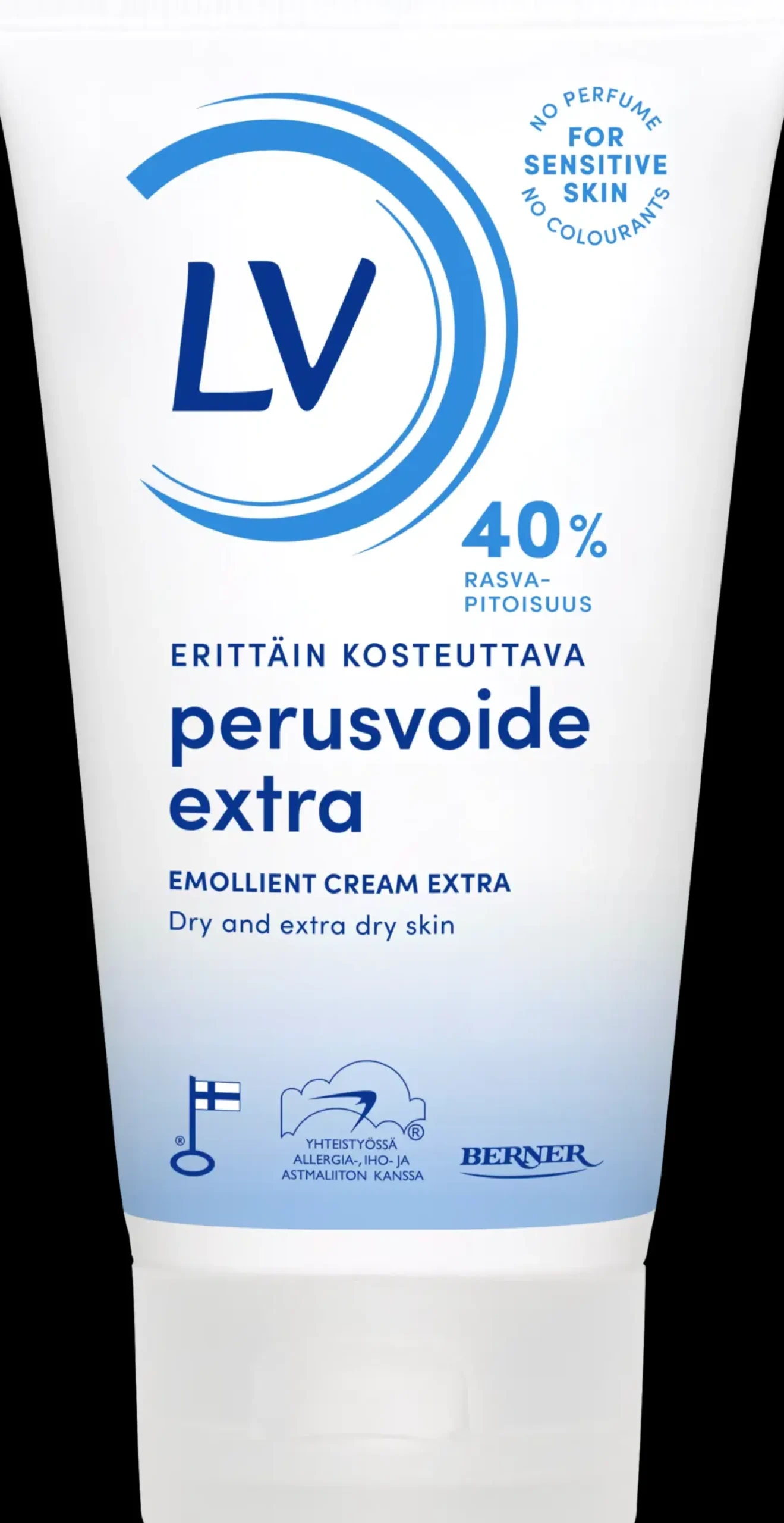 Levitä LV Perusvoide Extra -kosteusvoidetta puhtaalle iholle.