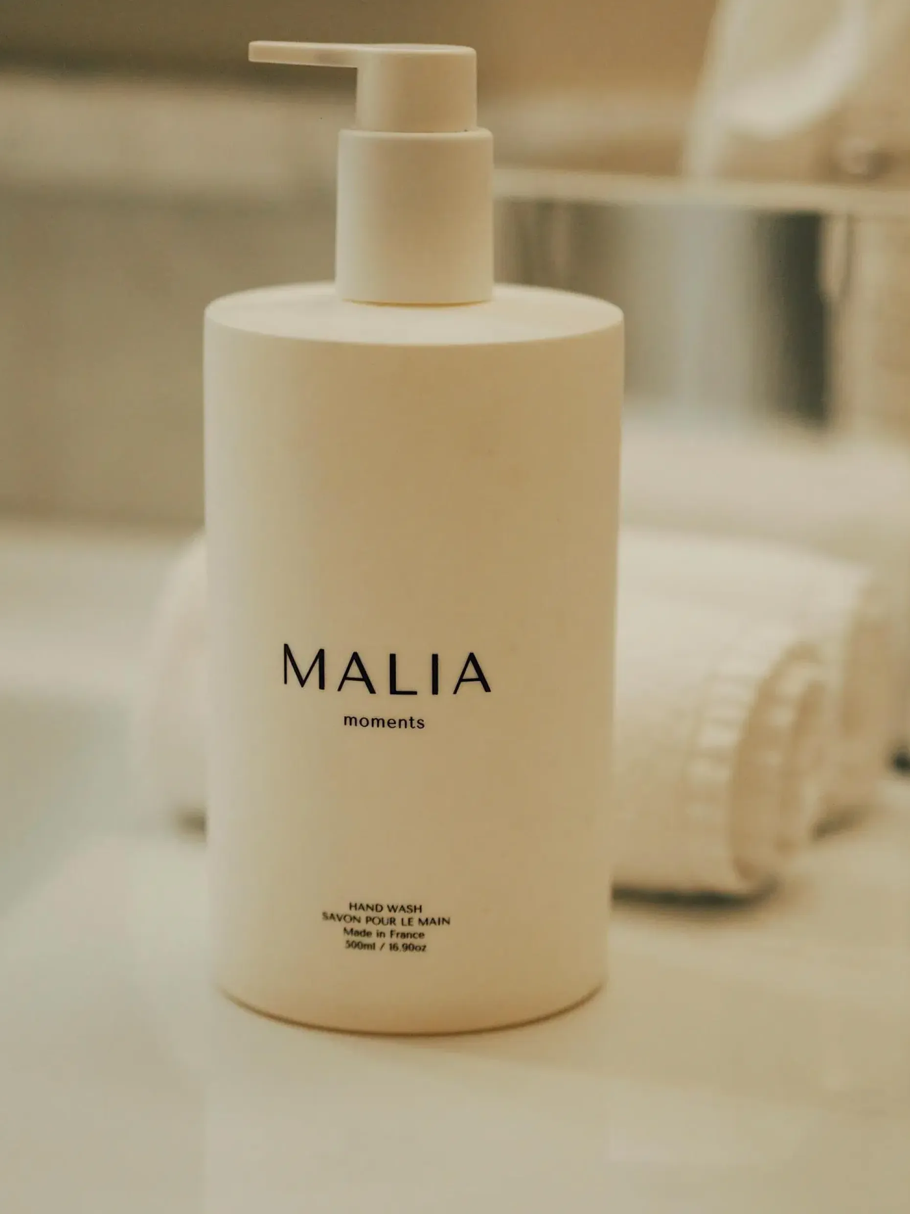 Luonnollinen, vegaaninen MALIA käsisaippua kauniissa uudelleenkäytettävässä pullossa. Pehmeä viipyvä tuoksu ja sopivan nestemäinen koostumus takaavat lempeän pesukokemuksen.