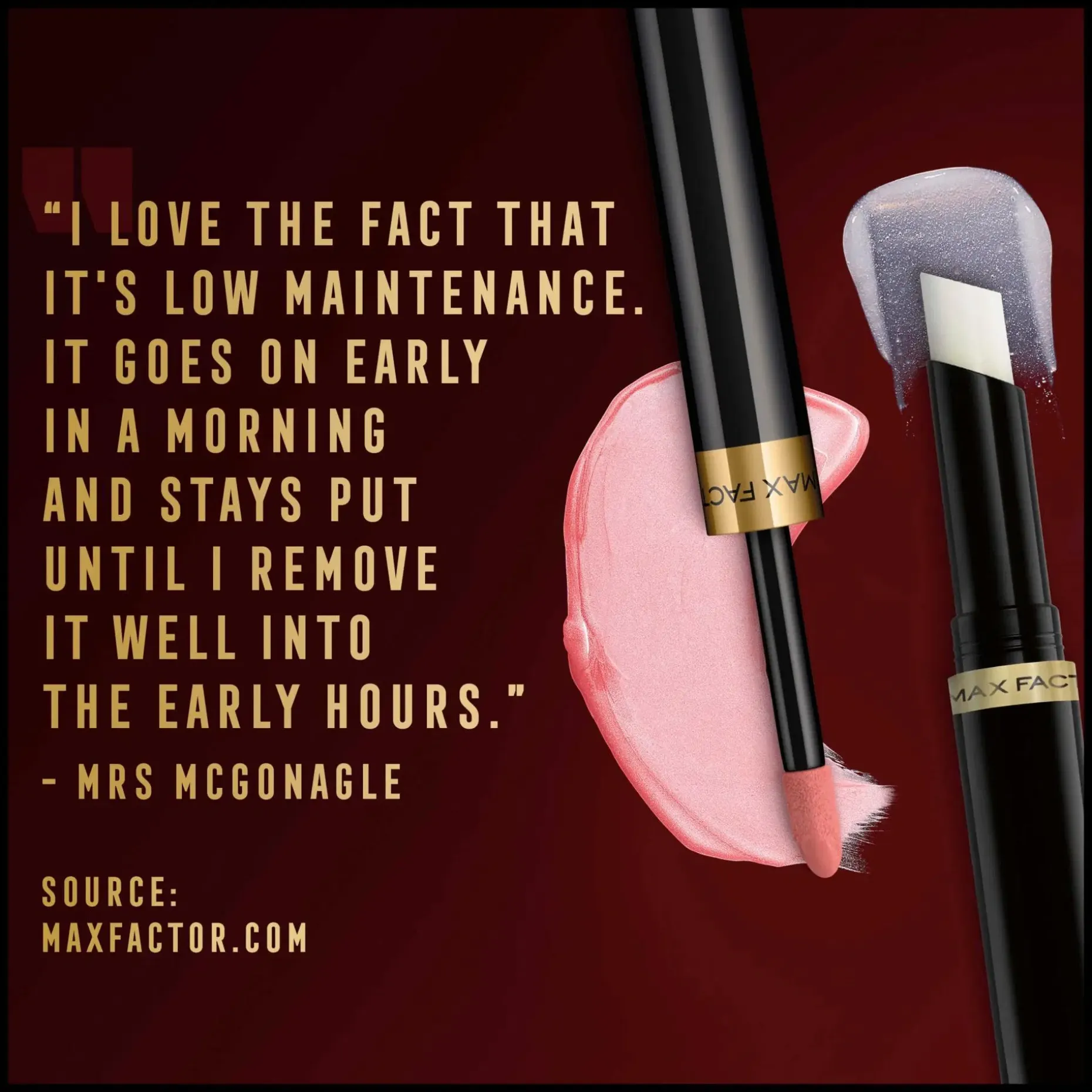 ”Best-seller huulituotteemme Lipfinity Lip Colour antaa uskomattoman intensiivisen värin huulillesi. Tuote on äärimmäisen pitkäkestoinen, sillä se kestää jopa 24 tuntia paikallaan. Nestemäinen koostumus on helppo levittää huulille, etkä välttämättä tarvitse erillistä huultenrajauskynää tämän tuotteen kanssa. Vaikka koostumus on nestemäinen, se ei kuivata huulia tai lohkeile pois, vaan joustaa huulten liikkeiden mukana. Tämän mahdollistaa kimmoisa dimethicone-kerros.