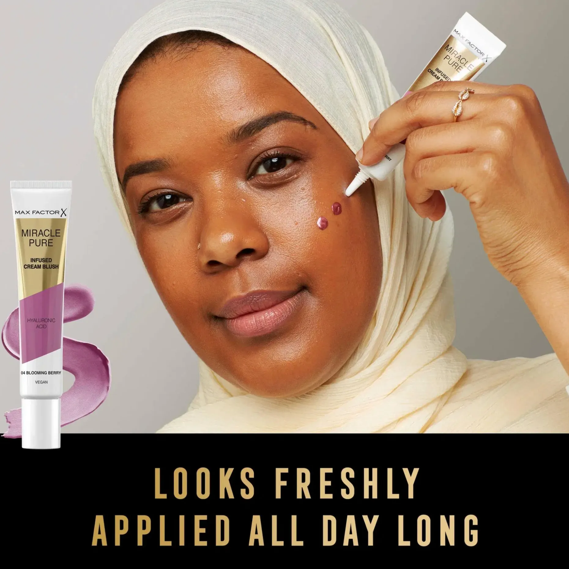 Miracle Pure Cream Blush on runsaspigmenttinen, heleyttävä ja kosteuttava voidemainen poskipuna. Kevyt ja helposti levittyvä hoitava koostumus sisältää mm. glyseriiniä, hyaluronihappoa ja squalanea. Max Factorin Miracle Pure Cream voidemaisella poskipunalla saat kerrostettua haluamasi upean kuultavan ja pitkäkestoisen lopputuloksen. Vegaani poskipuna on saatavilla kolmessa kauniissa sävyssä.