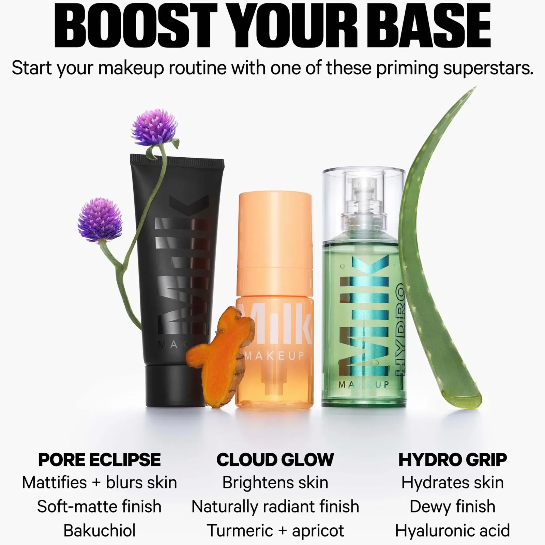 Avsluta din makeuprutin med Hydro Grip Set + Refresh Spray eller Pore Eclipse Matte Setting Spray för makeup som håller längre.