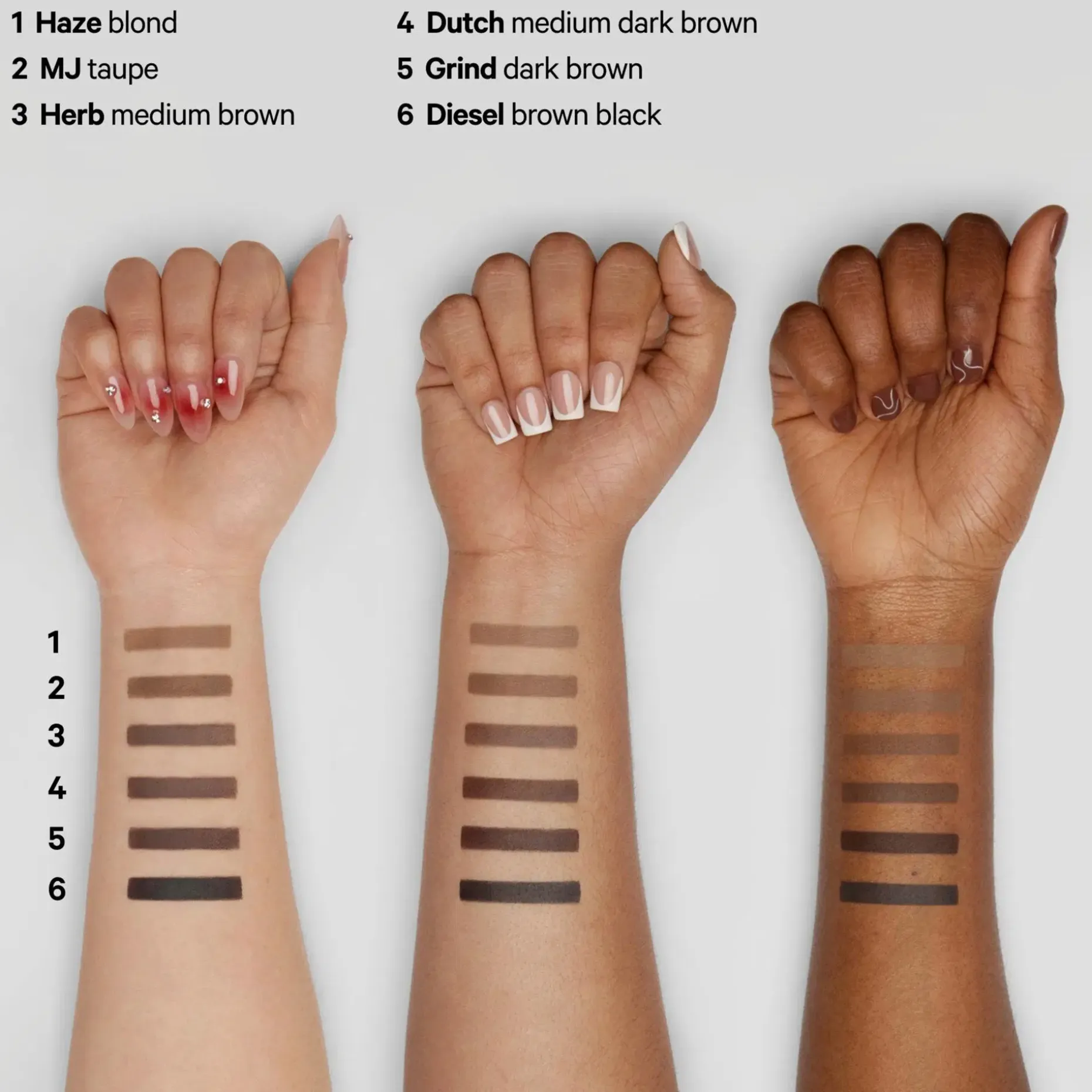 Svep lätt med den vinklade spetsen på brynen och bygg upp till önskad look (lite räcker långt). Använd den inbyggda spoolien för att sprida ut färgen och kamma brynen på plats. För extra stadga, använd med KUSH Fiber Brow Gel eller KUSH Brow Lamination Gel.