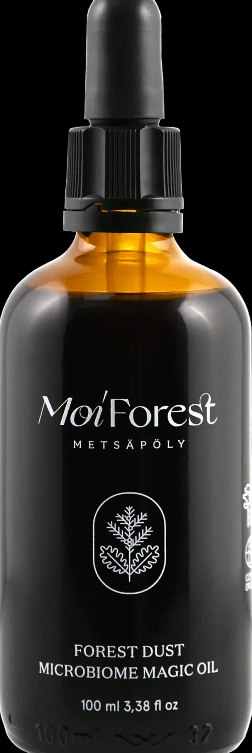 Jokaisen iho kaipaa kauttaaltaan silkkistä kosketusta, suojaa ja lempeää hoivaa, jotta koko kehomme pysyy tasapainossa. Moi Forest Microbiome Magic Oil monitoimiöljy tasapainottaa ja vahvistaa ihoa sekä koko kehoa hoivaavien luomuöljyjen ja metsäpölyn avulla. Pohjoisten shamaanien käyttämän pyhän kasvin, maariantuoksuheinän taianomainen voima hellii ärtynyttä ihoa ja auttaa pysymään yhteydessä sisimpäämme myös stressaavina aikoina. Voit levittää taikaöljyä koko keholle. Forest Dust Microbiome Magic Oil: Vahvistaa ihoa ja mikrobiomia Reconnecting Nature™ -mikrobiuutteen avulla. Sisältää luomulaatuisia omegarasvahappoja sisältäviä kasviöljyjä. Tasapainottaa ihoa ja koko kehoa maariantuoksuheinäuutteen avulla. Sopii käytettäväksi vaikka koko perheelle päästä varpaisiin.