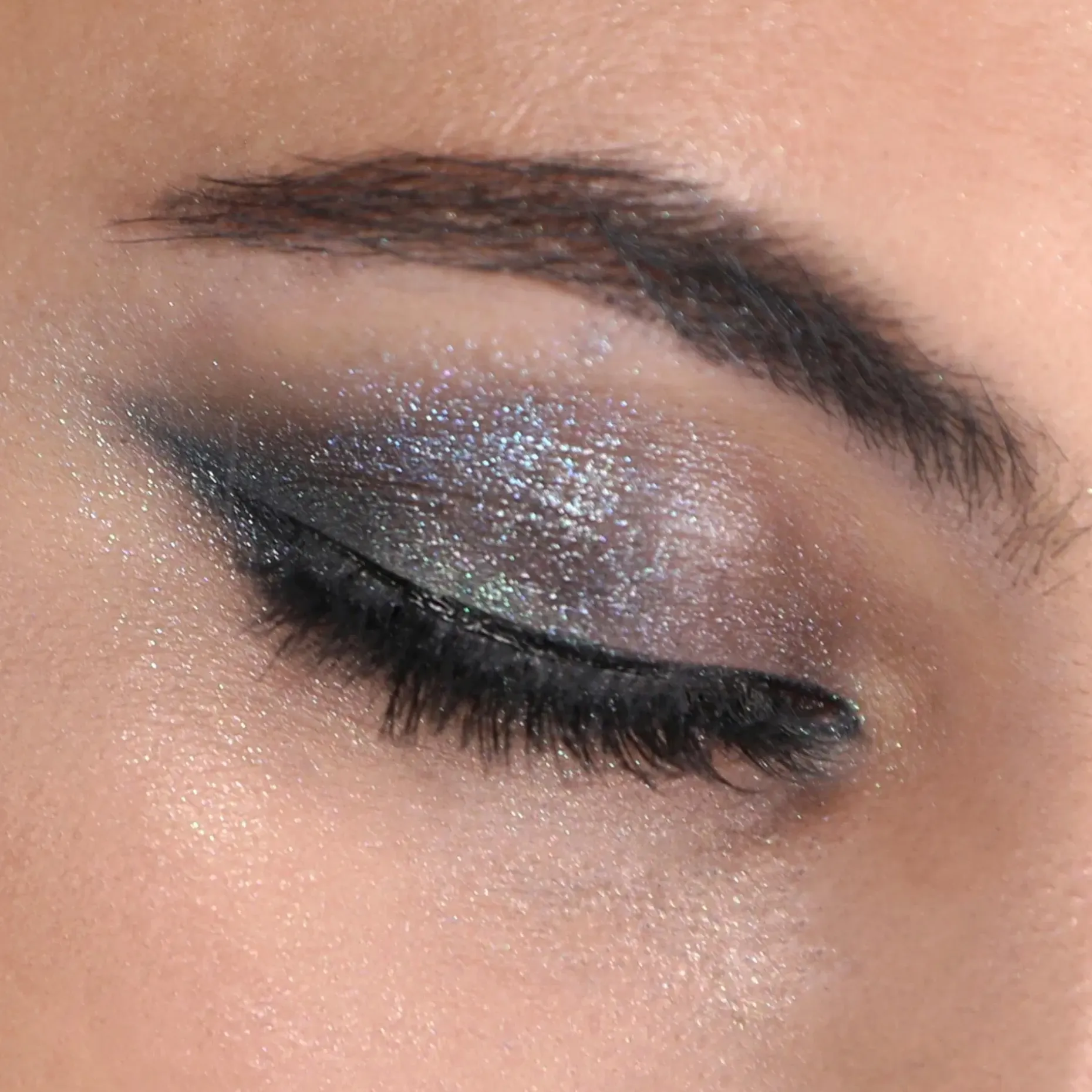 Levitä ensin luomivärinpohjustajaa. Pakkaa sitten väriä litteällä tai jämäkällä siveltimellä ja häivytä saadaksesi kokonaisvaltaisen kimalluksen. Vaihtoehtoisesti voit käyttää sormenpäitä halutun efektin luomiseen.