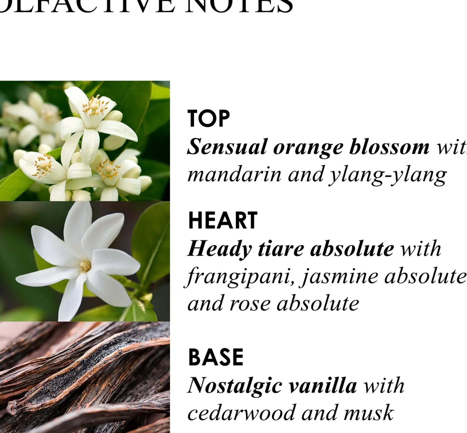 Sydän: polynesialainen frangipani, jasmiiniabsoluutti, ruusuabsoluutti