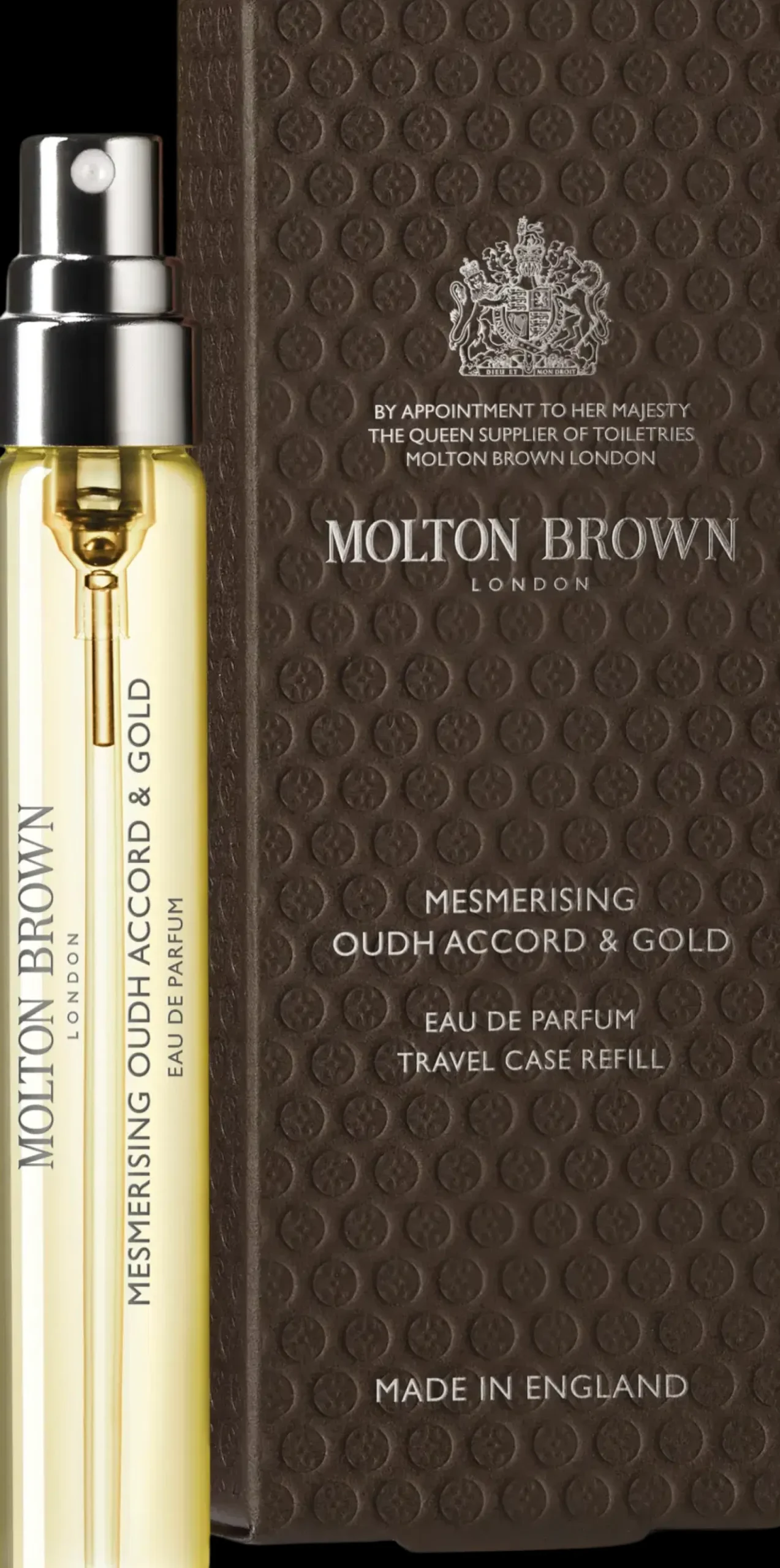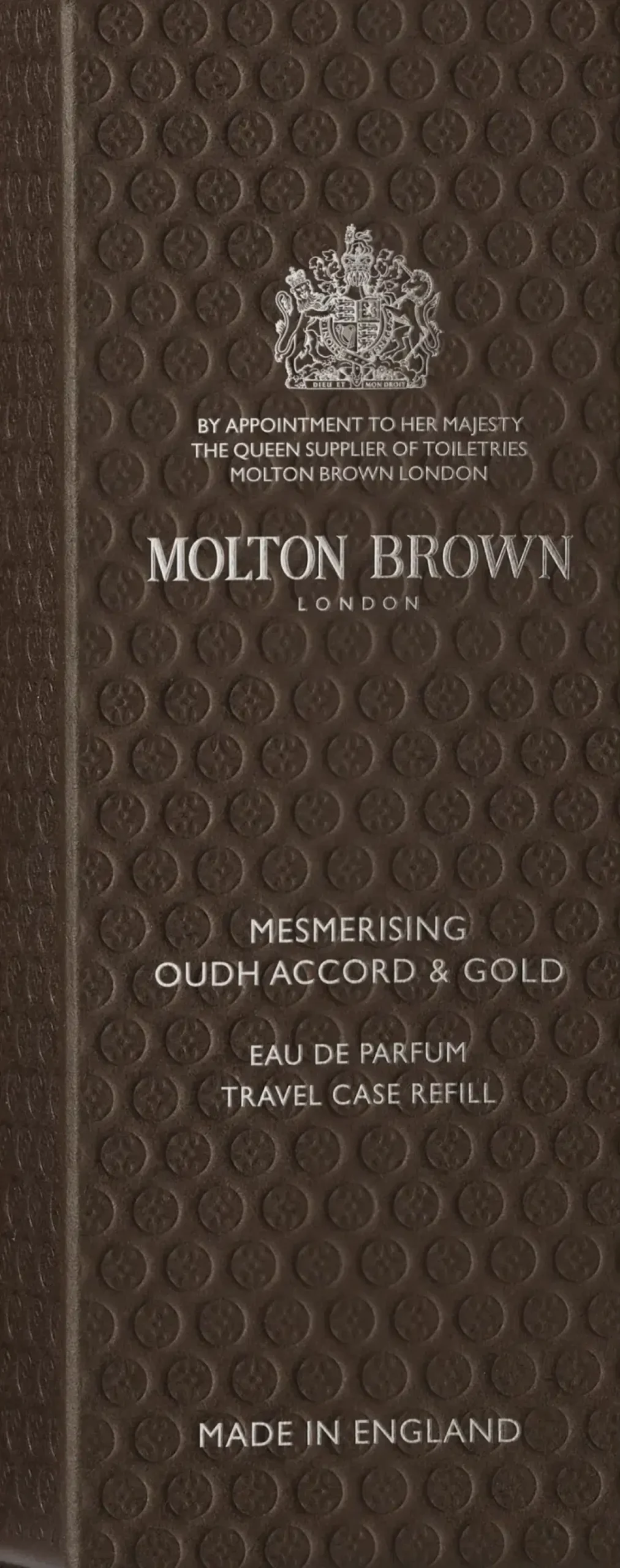Molton Brown Mesmerising Oudh Accord & Gold EdP Travel Case on mystinen, täyteläinen ja eksklusiivinen. Eau de Parfum sisältää sahramin, oudin ja mustan teen täyteläisiä, itämaisia nuotteja.