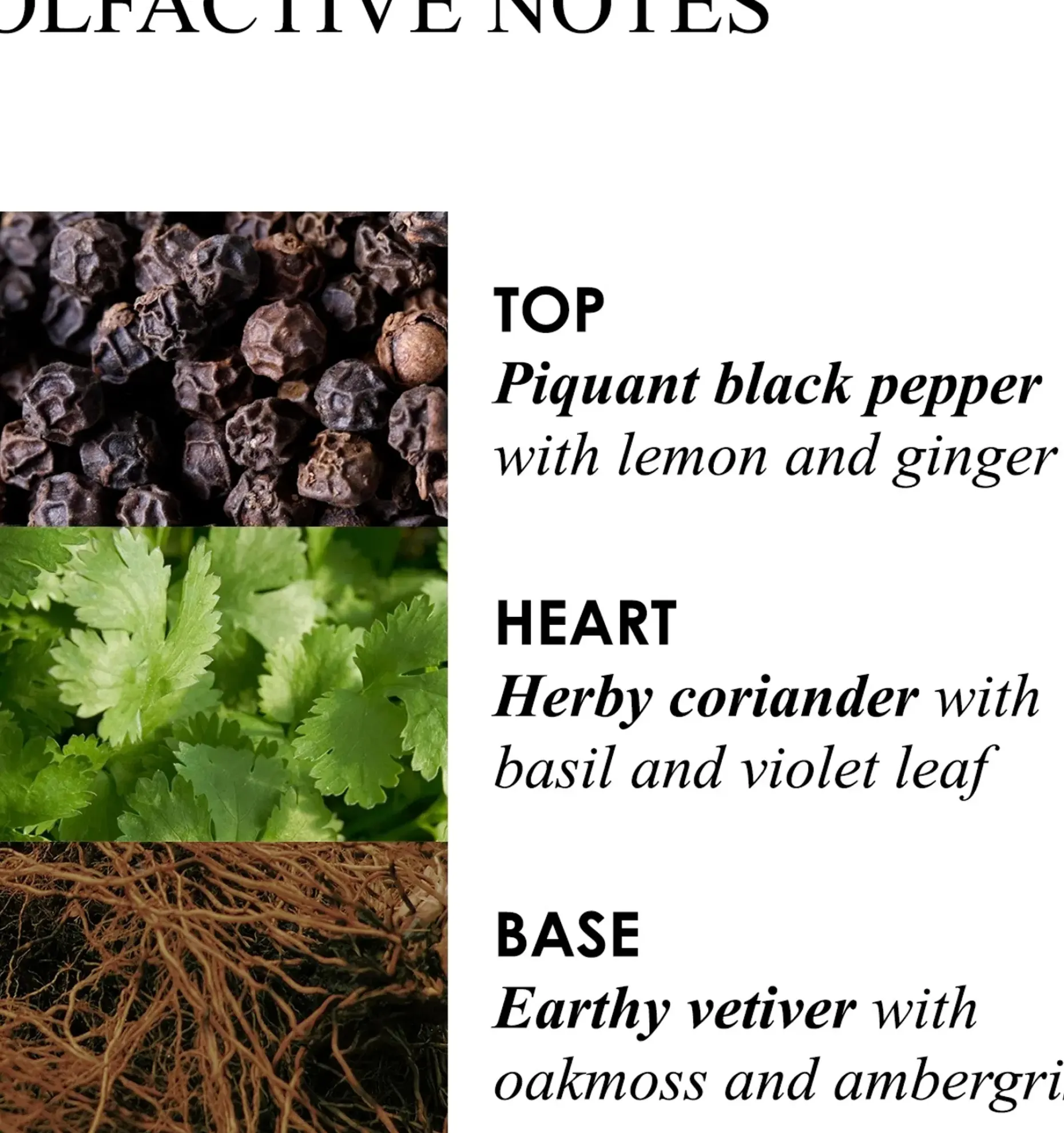 • Mustapippurin, korianterin ja vetiverin nuotteja