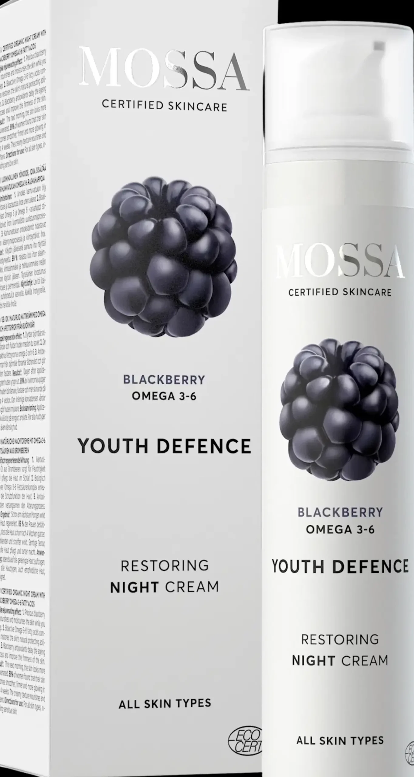 Mossan Youth Defence -linjan karhunvatukkayövoiteen täyteläinen koostumus ravitsee ja pehmentää ihon yöunen aikana. Silloin iho korja itseään ja on vastaanottavaisimmillaan ravintoaineille. Siksi yövoiteen täytyy olla ravitsevampi, kuin päivävoiteen, jolloin iho kaipaa ennemmin ja enemmän suojaa. Youth Defence -linjan tuotteet on kehitetty 20-35 vuotiaalle iholle ja niissä on kevyt anti age – vaikutus.
