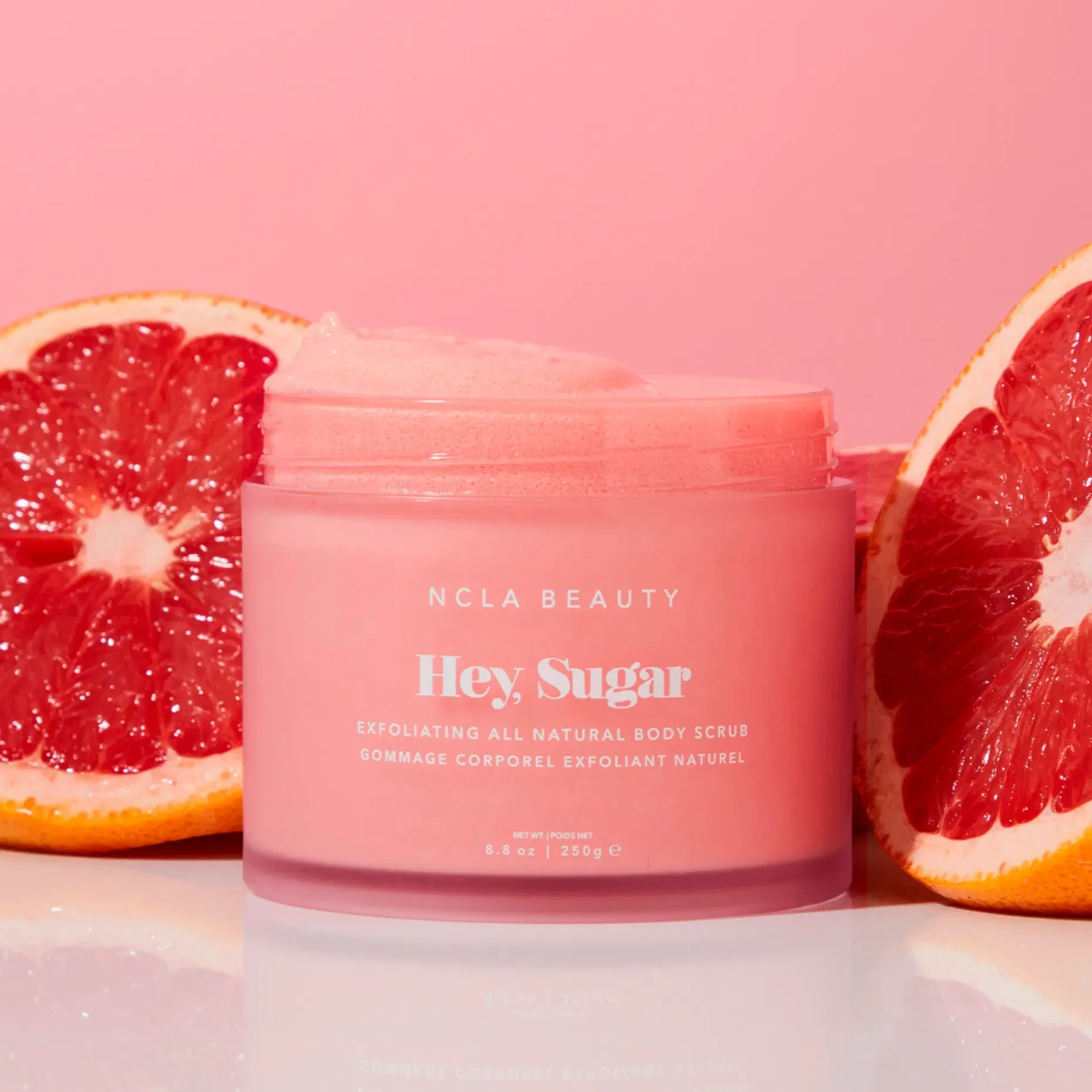 Hey, Sugar -kuorinnan makeat ainesosat kuorivat tehokkaasti kuivaa ihoa. Sisältää vain luonnonmukaisia raaka-aineita, jotka kosteuttavat ihoa ja jättävät jälkeensä kauniin hehkun. Kuorinnan vaikuttavina ainesosina toimivat sokeri, shea- ja mangovoit, luomulaatuinen hamppuöljy ja kaakaovoi.