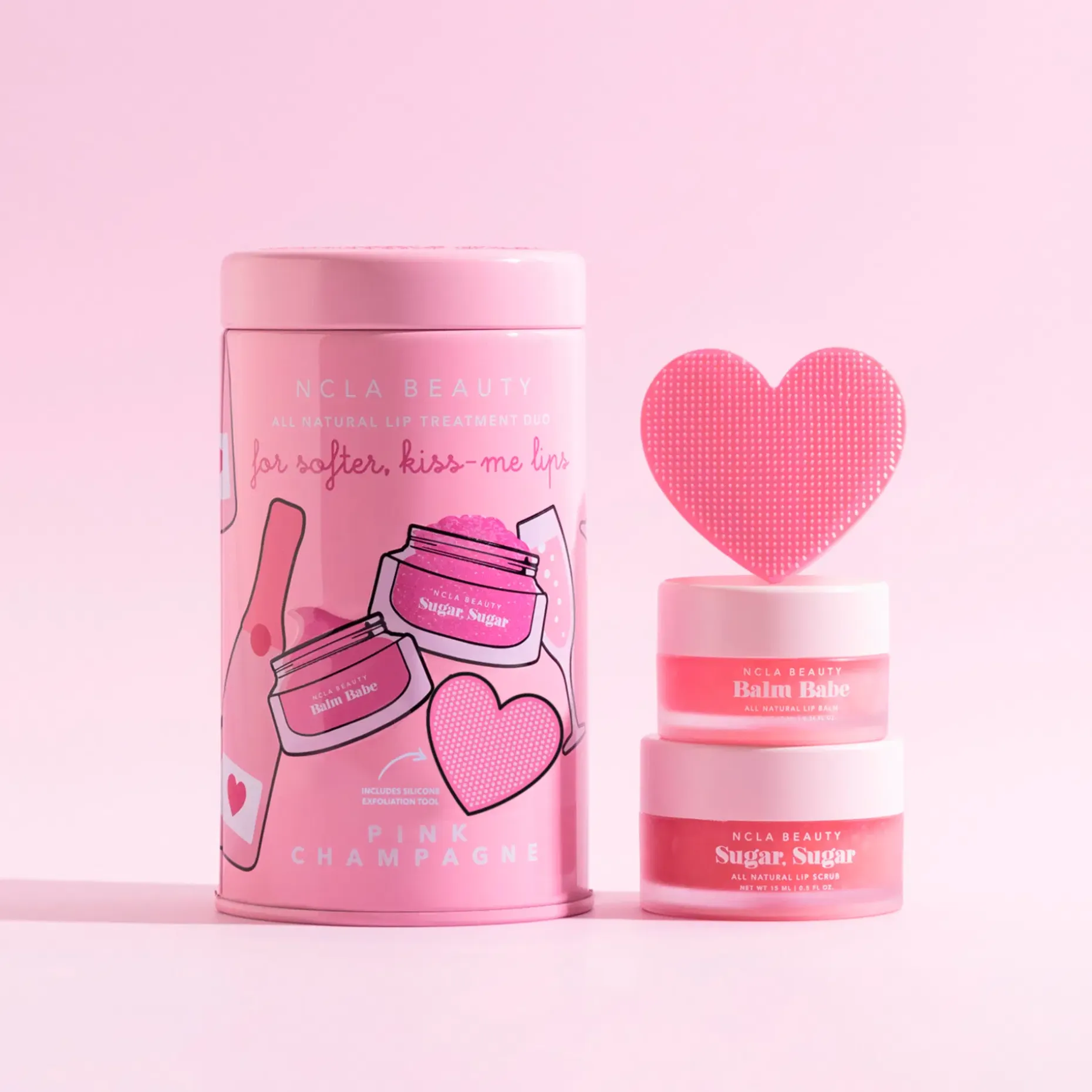 Ihastuttava luonnonkosmetiikan huultenhoitosetti sisältää vegaanisen huulivoiteen ja huulikuorinnan sekä silikonisen huultenkuorijan. Huulituotteissa pirskahteleva sampanjan tuoksu! Sugar, Sugar -huulikuorinta kuorii ja kosteuttaa huulia hellävaraisesti, kun Balm Babe -huulivoide rauhoittaa ja ravitsee huulia pitkäkestoisesti. Jokainen setti sisältää myös silikonisen huultenkuorijan, jolla voi tehostaa Sugar, Sugar -huulikuorinnan vaikutusta.