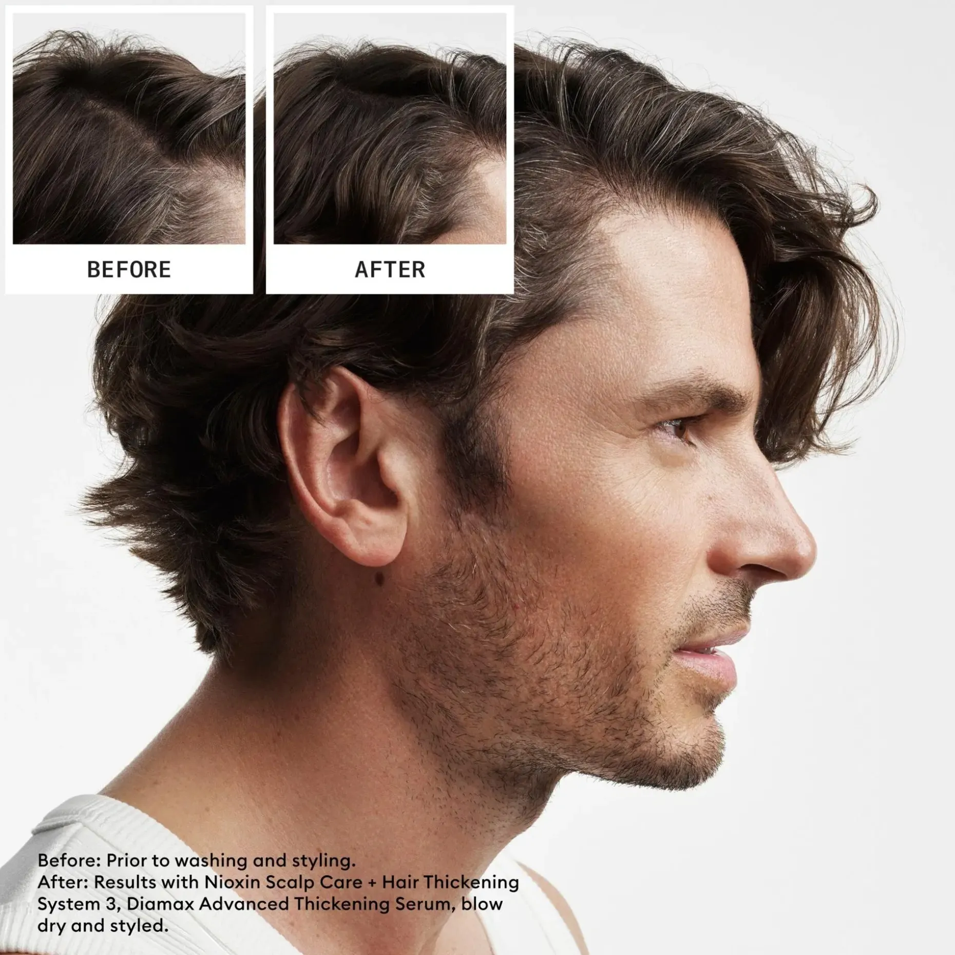 Ammattimainen kolmivaiheinen hoitojärjestelmä käsittelemättömille, selvästi ohentuneille hiuksille.