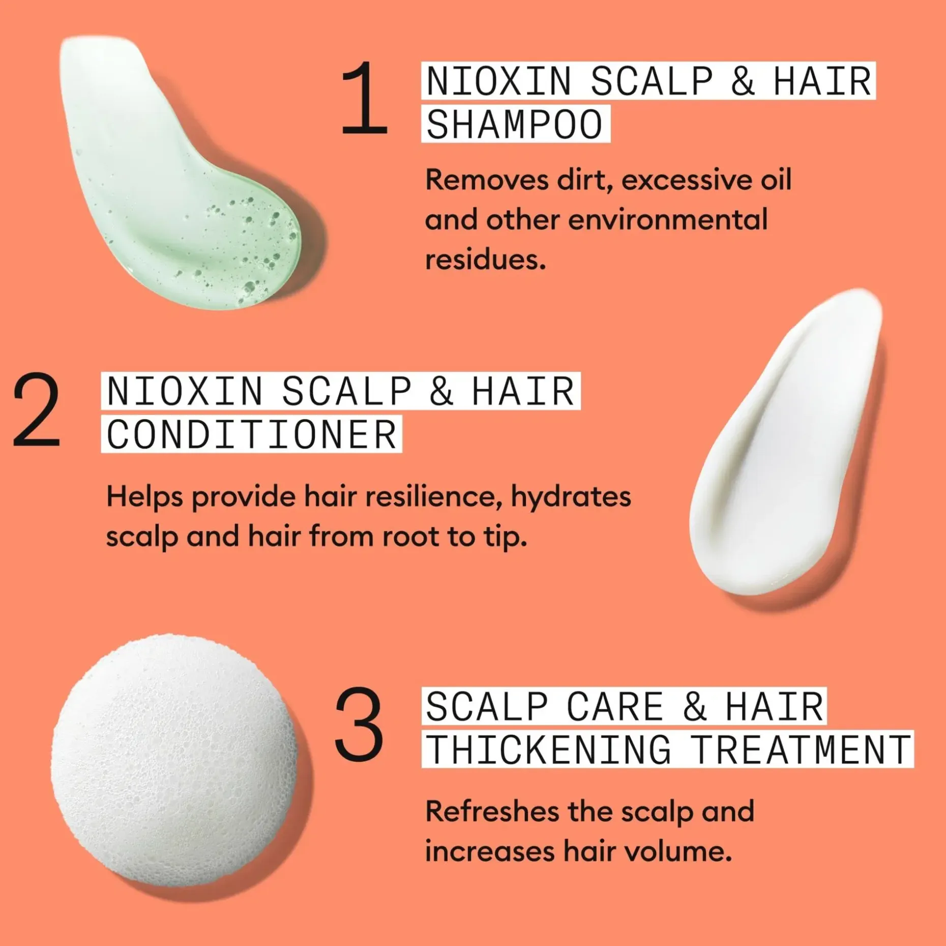 2. Levitä Nioxin Scalp Therapy -hoitoainetta hiuksiin hiuspohjasta latvoihin. Huuhtele huolellisesti.