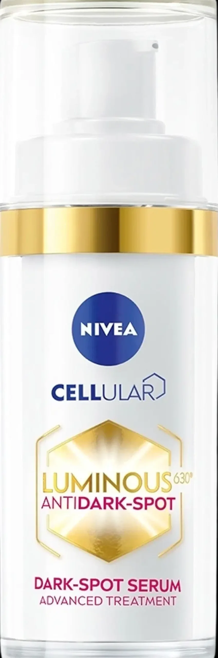 NIVEA Cellular Luminous630 Anti Dark-Spot Serum -kasvoseerumi kosteuttaa ja tekee ihosta tasaisen ja säteilevän, näkyvät tulokset 2 viikossa! Antaa NIVEAn parhaimman tehokkuuden pigmenttiläiskien hoitoon kaksoisvaikutuksellaan – se vähentää tummia läiskiä samalla kun se ehkäisee niiden syntymistä säännöllisellä käytöllä. Tasoittaa samanaikaisesti ihon sävyeroja sekä rakennetta. Sileä ja kevyt koostumus imeytyy nopeasti iholle. Yhdistää korkeimman pitoisuuden vallankumouksellista Luminous630-ainesosaa E-vitamiinin ja soluja aktivoivan hyaluronihapon kanssa*. Hellävarainen iholle, sopii kaikille ihotyypeille, myös herkälle iholle. Tehokas kaikille ihon sävyille. *in-vitro.