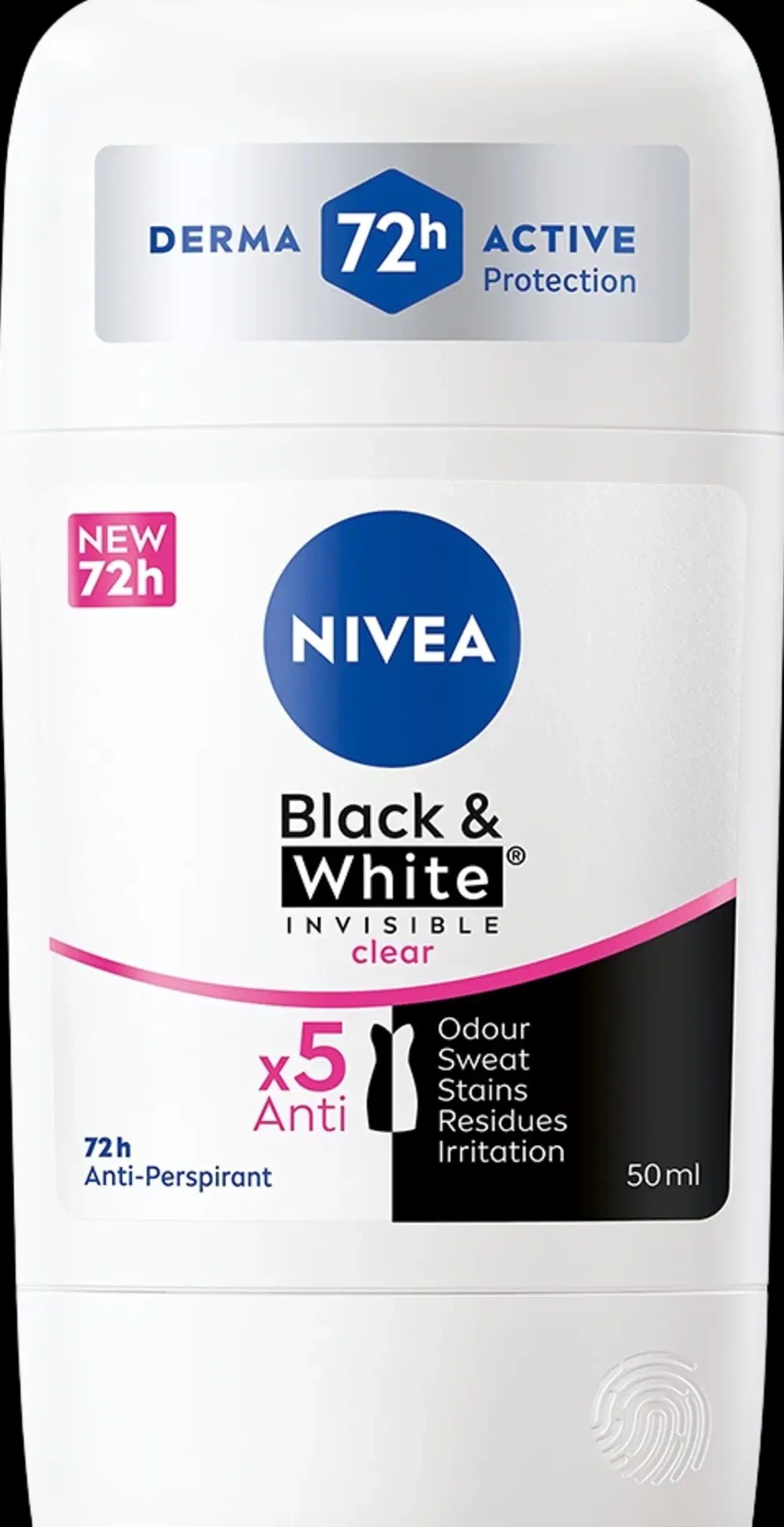 NIVEA Black & White Invisible Original Deo Stick -antiperspirantti antaa tehokkaan ja luotettavan 72 tunnin antiperspiranttisuoja, joka hoitaa ihoa. Suojaa mustia vaatteita valkoisilta jäljiltä ja ehkäisee keltaisten tahrojen syntymistä valkoisiin vaatteisiin. Hellävarainen, hoitava koostumus. Iho tuntuu puhtaalta ja raikkaalta. Miellyttävä, raikas tuoksu. Ei sisällä etyylialkoholia. Dermatologisesti testattu. Kierrätettävä pakkaus. Stick on formaattina kätevä myös matkaillessa; saat sen käsimatkatavaroihin ilman erillistä pakkaamista nestemäisten tuotteiden kiintiöön.