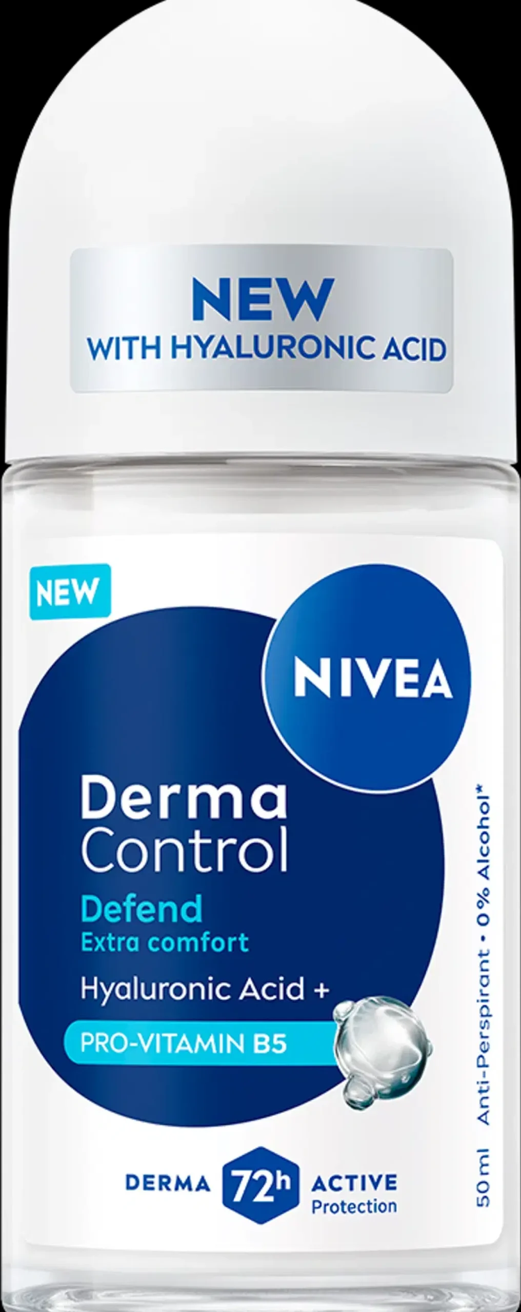 NIVEA Derma Control Defend Deo Roll-on -antiperspirantti antaa miellyttävän tunteen ja ehkäisee kutinaa, tarjoten samalla luotettavan 72 tunnin antiperspiranttisuojan. Edistyksellinen, hyaluronihappoa ja B5-provitamiinia sisältävä koostumus suojaa ihoa sheivauksen jälkeiseltä ärsytykseltä ja vähentää vaatteiden aiheuttamaa hankausta, samalla kun se ravitsee kainaloiden ihoa ja antaa iholle pehmeän tunteen.