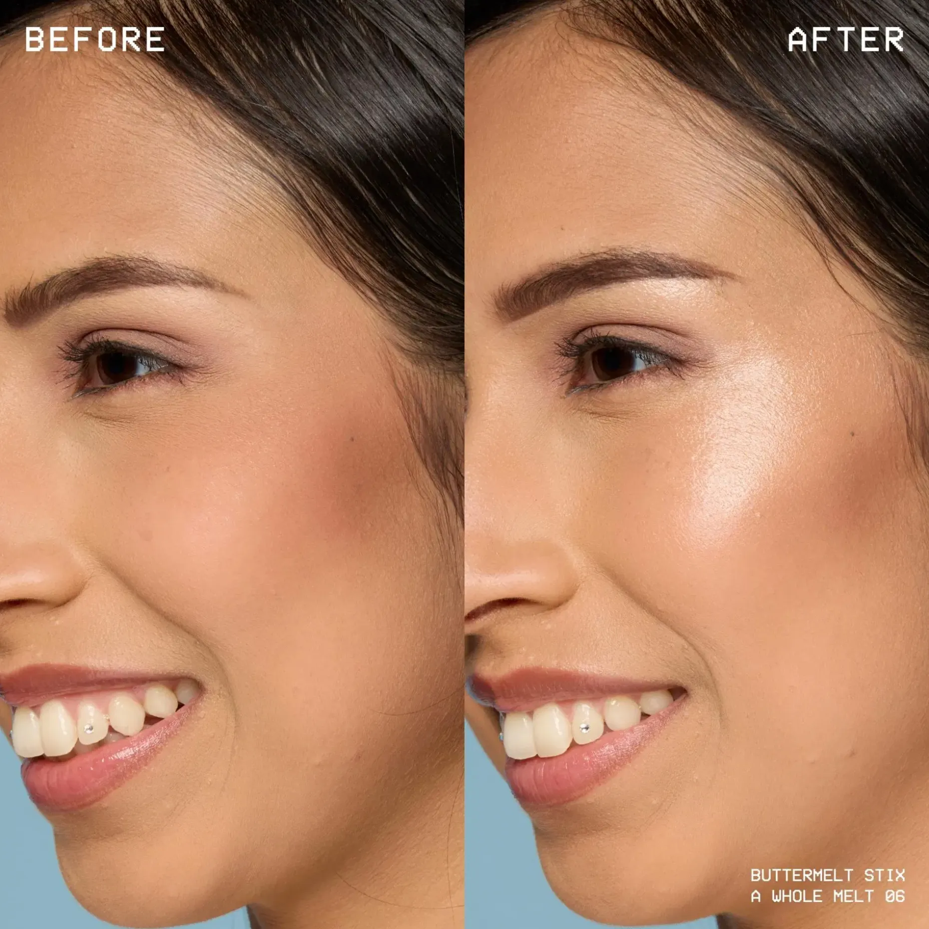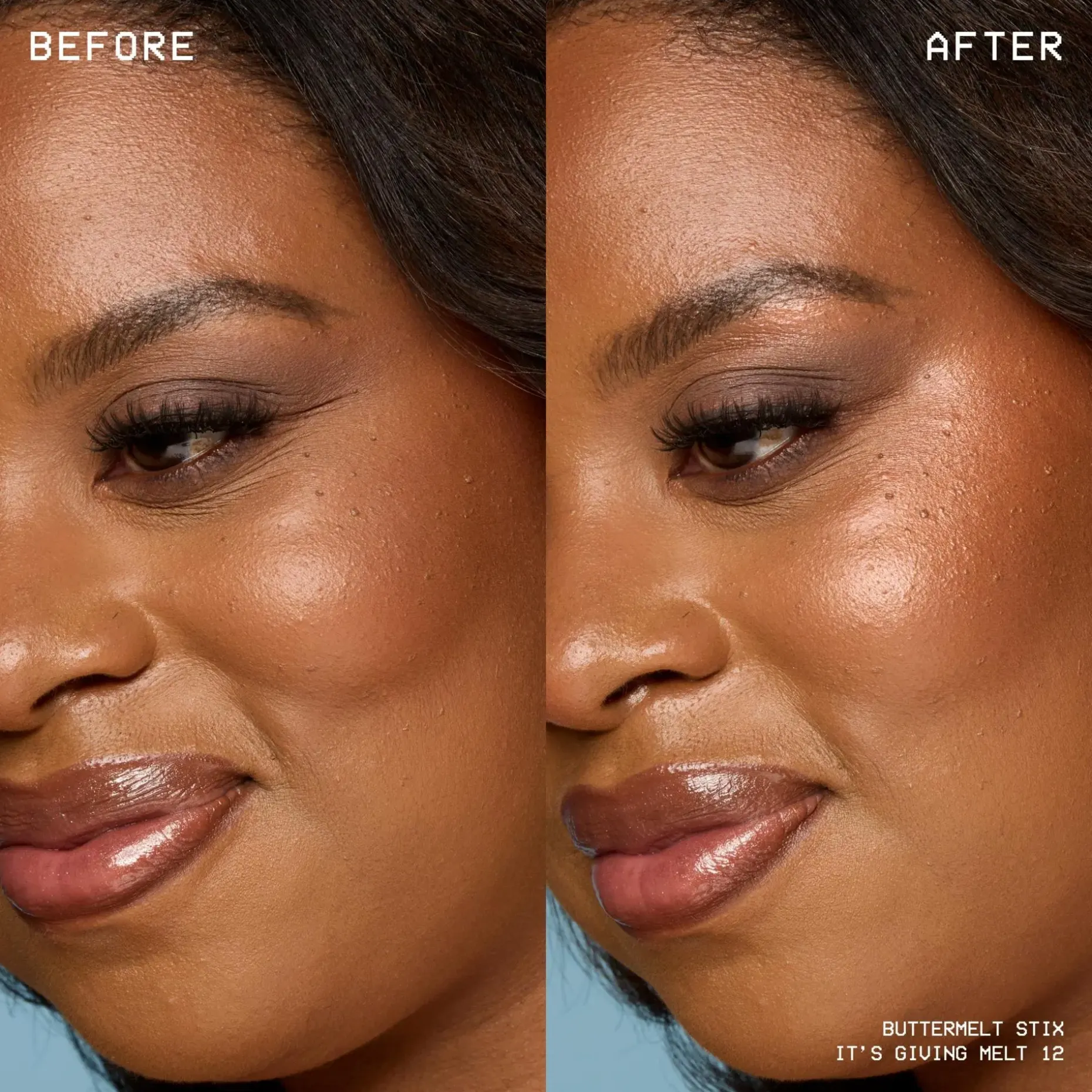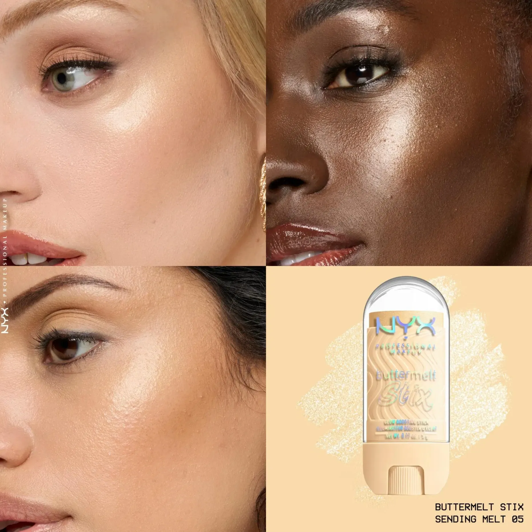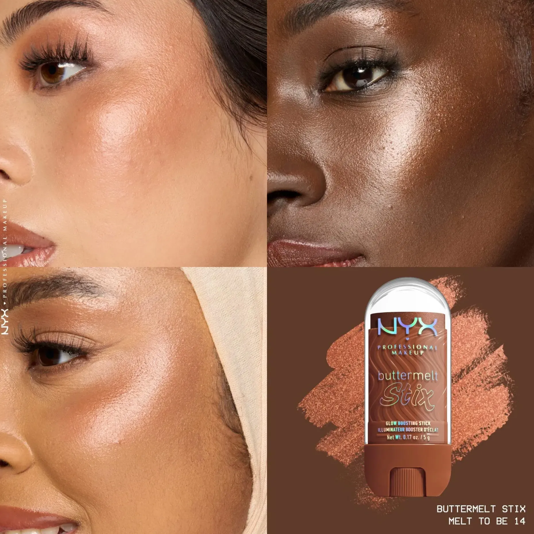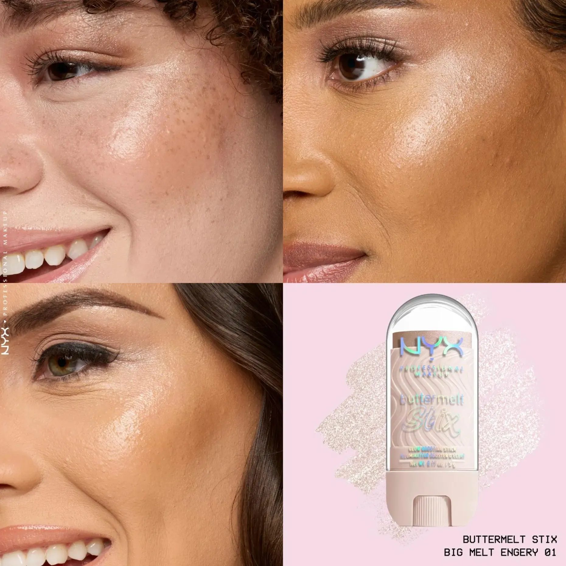 Pehmeää kuin VOI! NYX Professional Makeup Buttermelt Glow Boosting Highlighter Stix -korostuspuikot antavat iholle voinpehmeää korostusta ja hohtoa päästä varpaisiin. Ravitsevaa cupuaçu- ja kookosvoita sisältävä koostumus antaa iholle kosteuttavan meikkipohjan, joka sulautuu ihoosi täydellisesti. Upeaa hehkua ilman varisevaa kimalletta kasvojen kohokohtien valaisemiseen tai antamaan hohdetta koko kasvoille. Voidaan käyttää myös vartalon ihon korostamiseen solisluilla, käsivarsissa ja jaloissa. • Kestää jopa 8 tuntia • Ei kerry juonteisiin tai jätä rasvaista tunnetta • Ei sisällä varisevaa kimalletta • Koostumus sisältää cupuaçu- ja kookosvoita