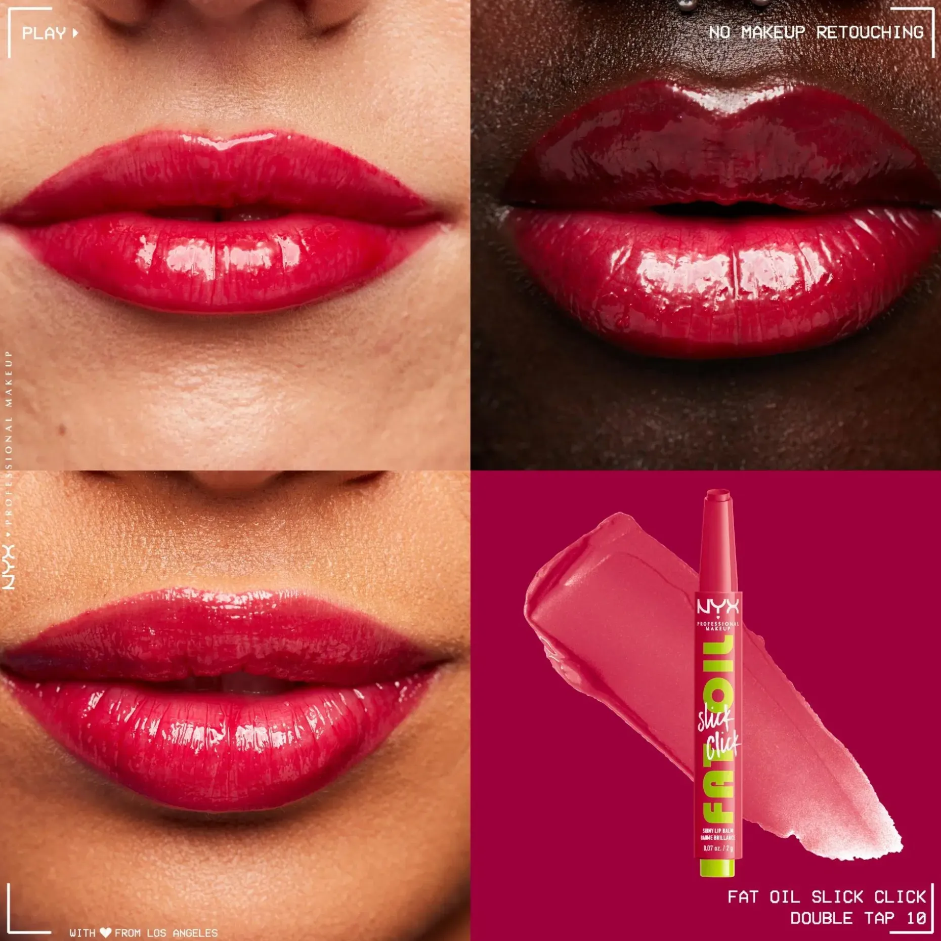 Pehmeät huulet vain yhdellä klikkauksella. NYX Professional Makeup Fat Oil Slick Stick sävyttävä huulivoide antaa juuri oikean määrän tuotetta yhdellä klikkauksella. Vegaaninen avokado-, lakka- ja vadelmaöljyä sisältävä koostumus* hoitaa huuliasi tehokkaasti.