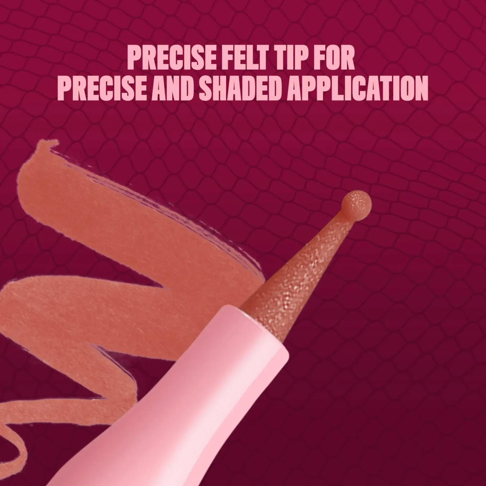 Rajaa, muotoile tai väritä huulesi saadaksesi muotoillut, kohotetut huulet. Monikäyttöinen pyöristetty huopakärki liukuu huulille saumattomasti ja tarkasti.