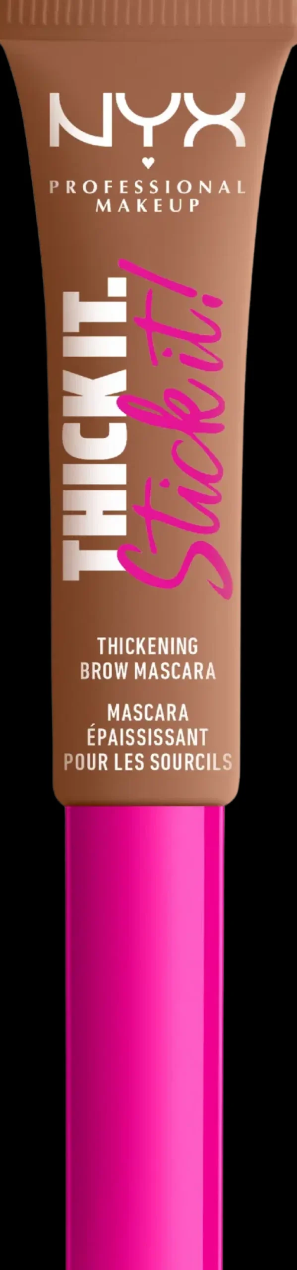NYX Professional Makeup kulmamaskara, jolla on vegaaninen koostumus*: Thick it. Stick it! Antaa luonnolliselta näyttävän lopputuloksen, joka kestää jopa 16 tuntia. Kerrostettavat, värjätyt kasvipohjaiset kuidut vievät kulmasi uusiin ulottuvuuksiin kerros kerrokselta. Päivitä kulmasi voimakkaista, voimakkaampiin ja voimakkaimpiin kulmiin!