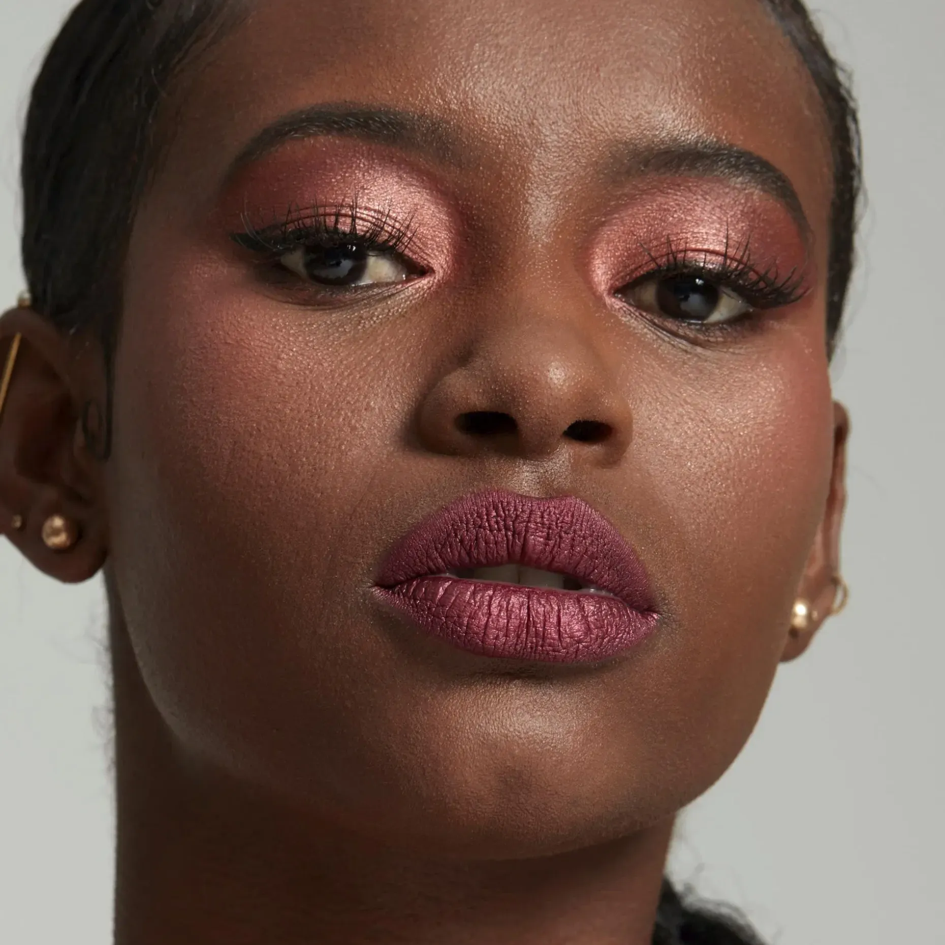 Aloita levittämällä pohjustusainetta. Levitä meikkisiveltimellä ensin pohjasävyä ja sen jälkeen tummempaa sävyä. Häivytä huolellisesti. Katso pakkausselosteesta mitä sävyjä voidaan käyttää luomivärinä.