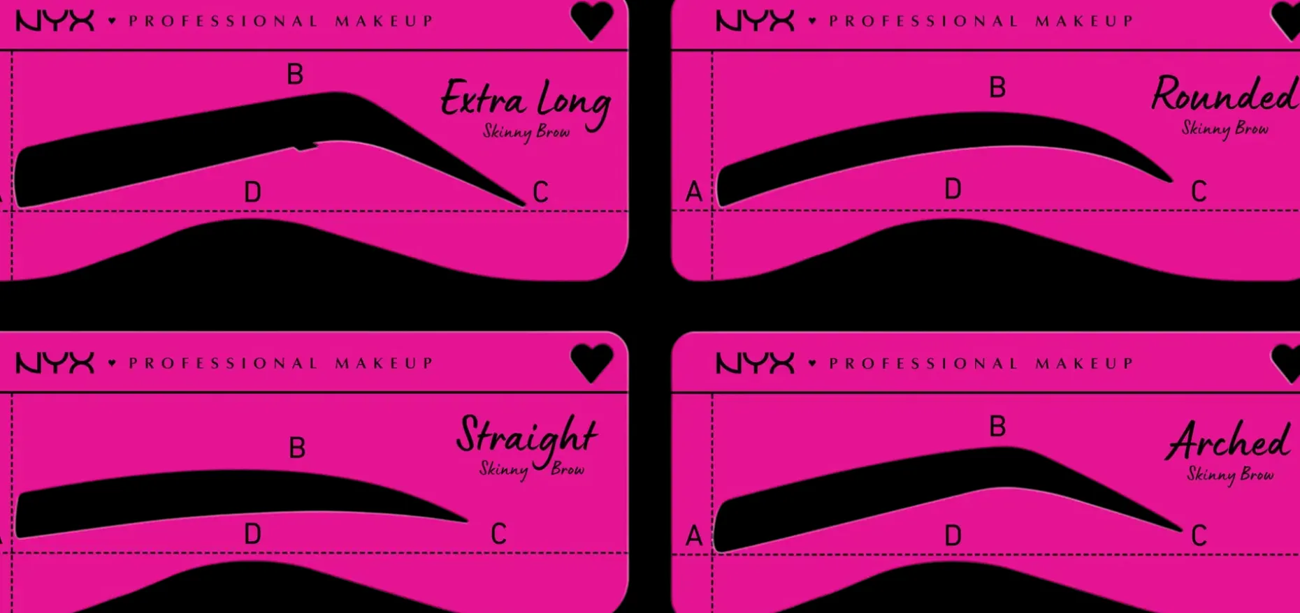 NYX Professional Makeup Zero To Brow Stencil -sapluunan avulla piirrät helposti haluamasi kulmien muodon riippumatta siitä, haluatko täyteläisemmät tai ohuemmat kulmat. Valitse joko ”Skinny” tai ”Thick” -sapluuna ja luo täydellinen kulmalook yhdessä Zero To Brow Longwear -kulmageelin kanssa. Kummassakin sapluunassa on 4 eri muotoa, joten voit luoda juuri sellaiset kulmat kuin haluat.