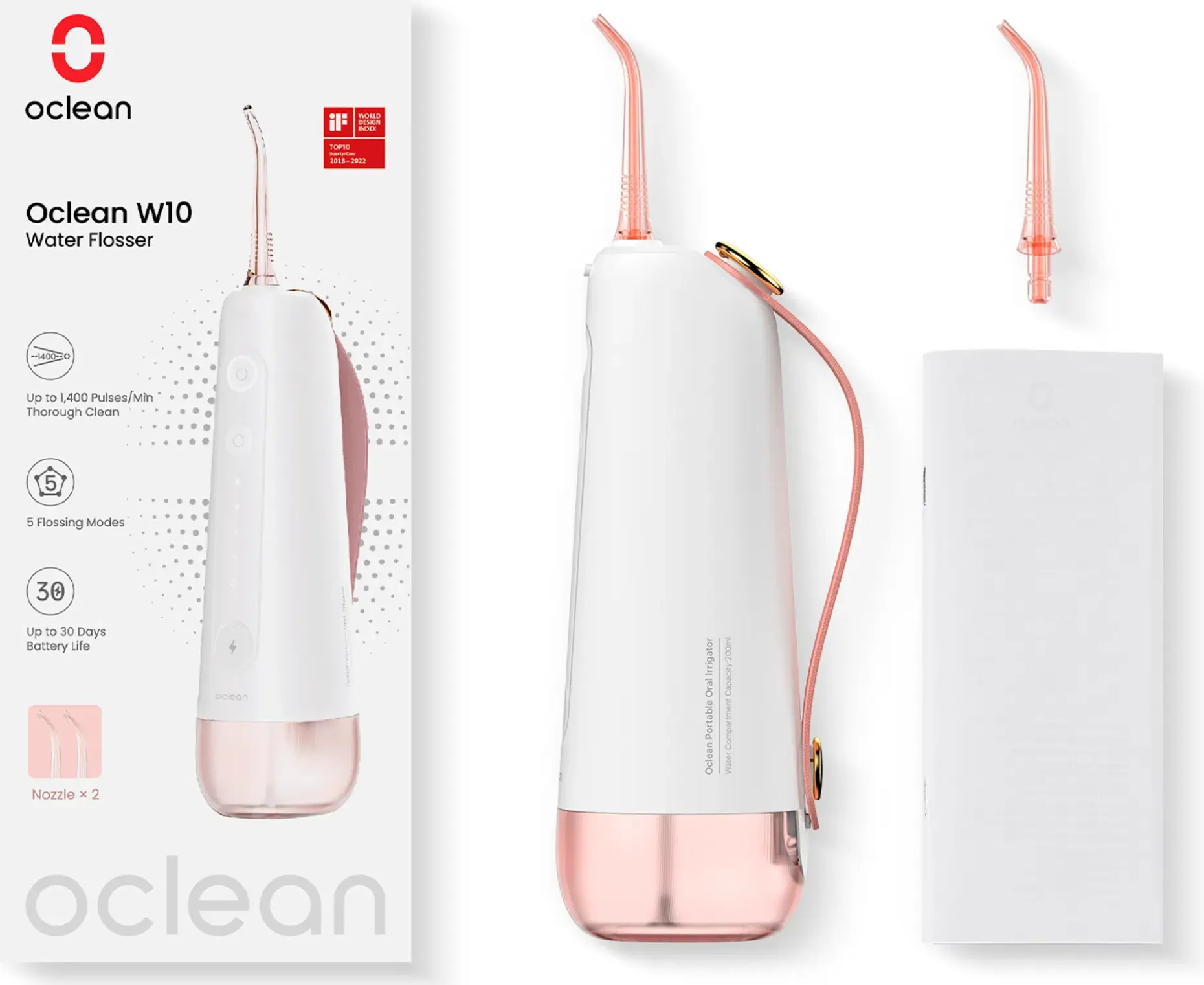Oclean W10 hammasvälisuihku auttaa pitämään hyvää huolta suuontelosta. Laite on tarkoitettu käytettäväksi hampaiden harjauksen jälkeen. Suusuihku irrottaa ruoanjäänteet ja bakteerit, joihin hammasharja ei tepsi. Laitteella voidaan myös hieroa ikeniä, mikä parantaa niiden verenkiertoa sekä tekee niistä vahvemmat ja terveemmät. Oclean W10 -suunhuuhtelulaitteessa on 30 päivän akunkesto ja viisi erilaista huuhtelutilaa. Laite poistaa ruoanjäänteet tehokkaasti ja raikastaa hymyn.