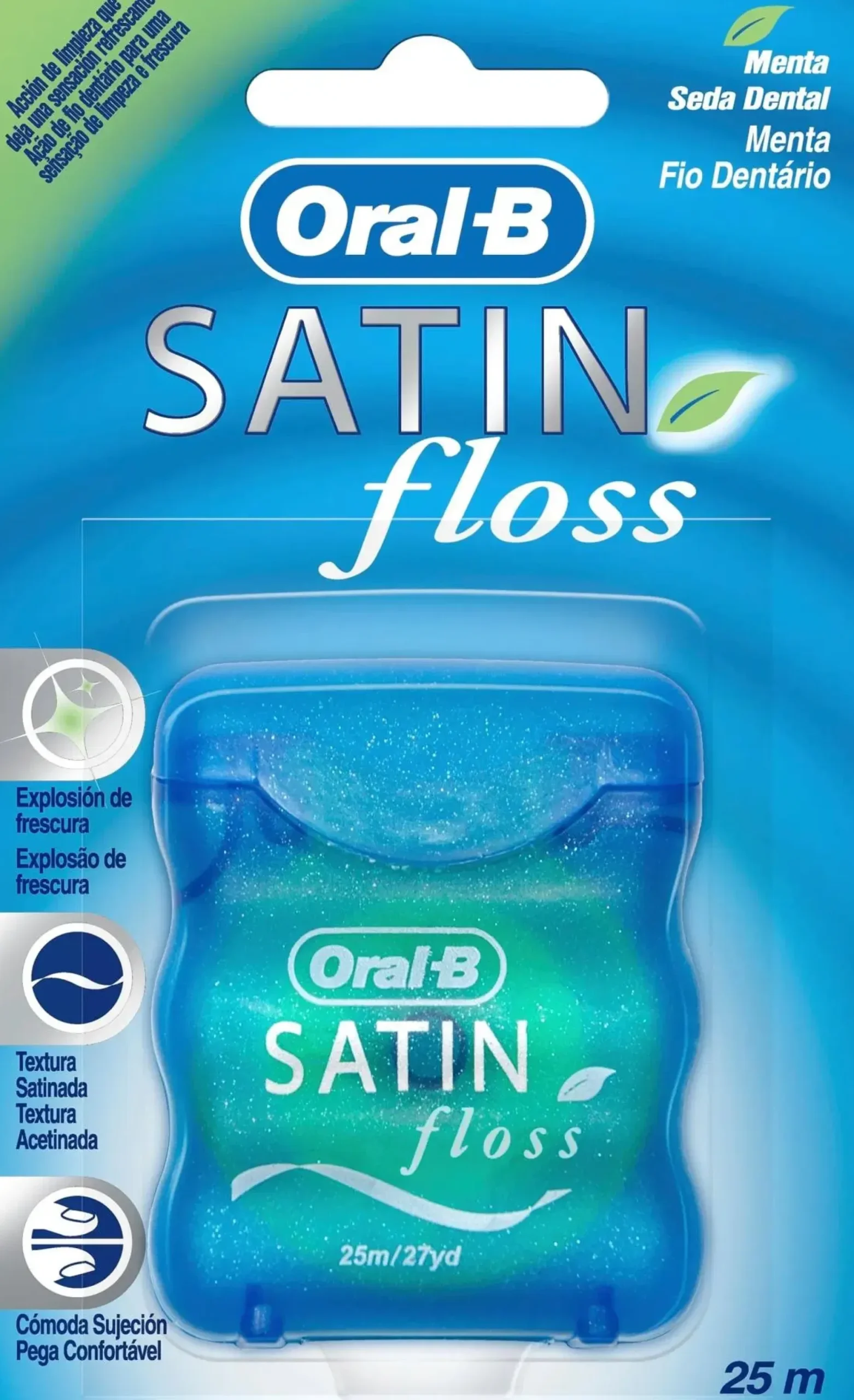 Raikkaan mintun makuinen, rakenteeltaan satiinimainen Oral-B Satin Floss -hammaslanka päivittäiseen hammasvälien puhdistukseen. Yksilankainen hammaslanka on miellyttävä käsitellä, ei rispaantumista eikä katkeilua. Litteä muoto sopii hammasväleihin ja sen käyttö on helppoa myös märkänä.