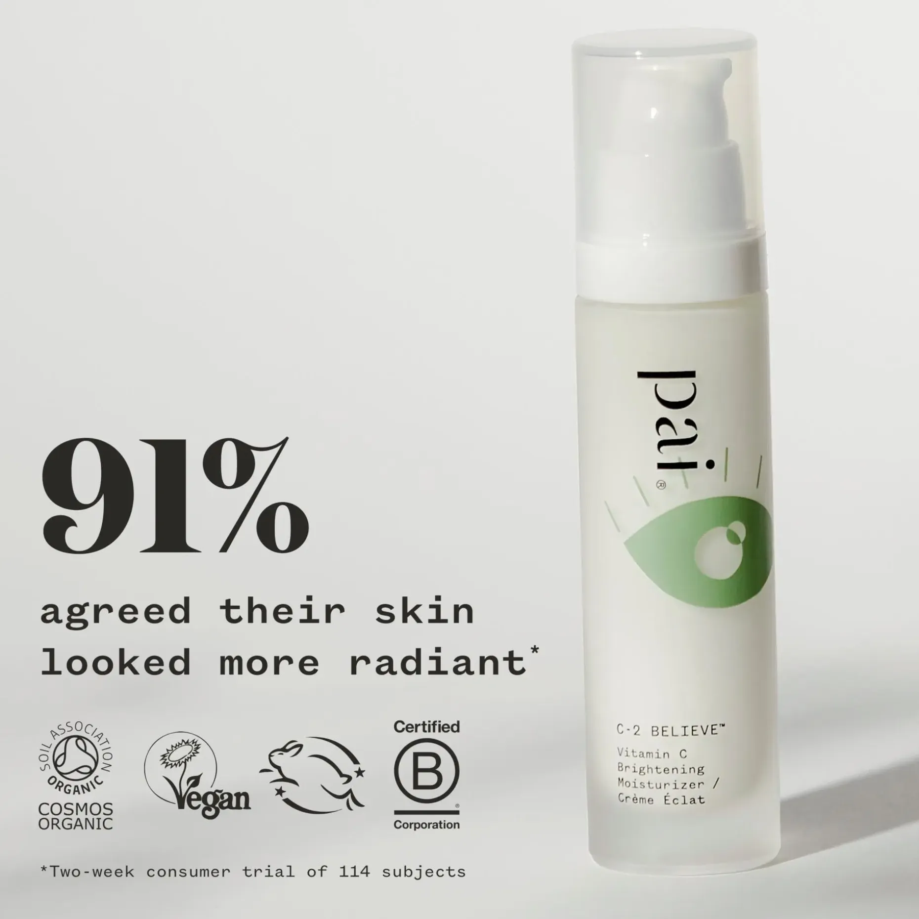 Kuten muutkin Pai Skincare -sarjan tuotteet, C-2 Believe™ on riippumattomasti laastaritestattu ja dermatologisesti hyväksytty herkälle iholle sopivaksi.
