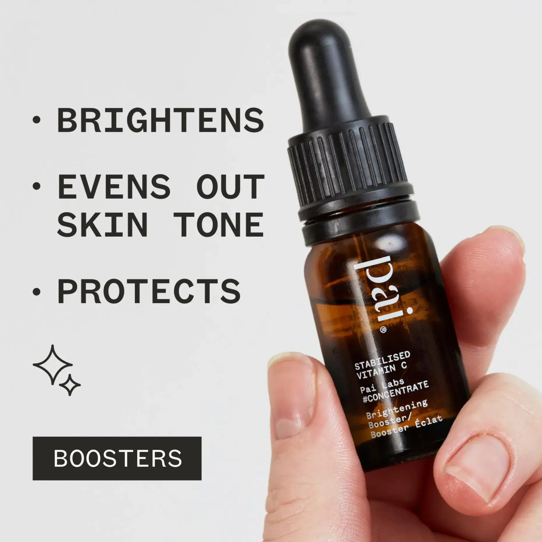 Kuten muutkin Pai Skincare -sarjan tuotteet, Stabilised Vitamin C Brightening Booster on riippumattomasti laastaritestattu ja dermatologisesti hyväksytty herkälle iholle sopivaksi.