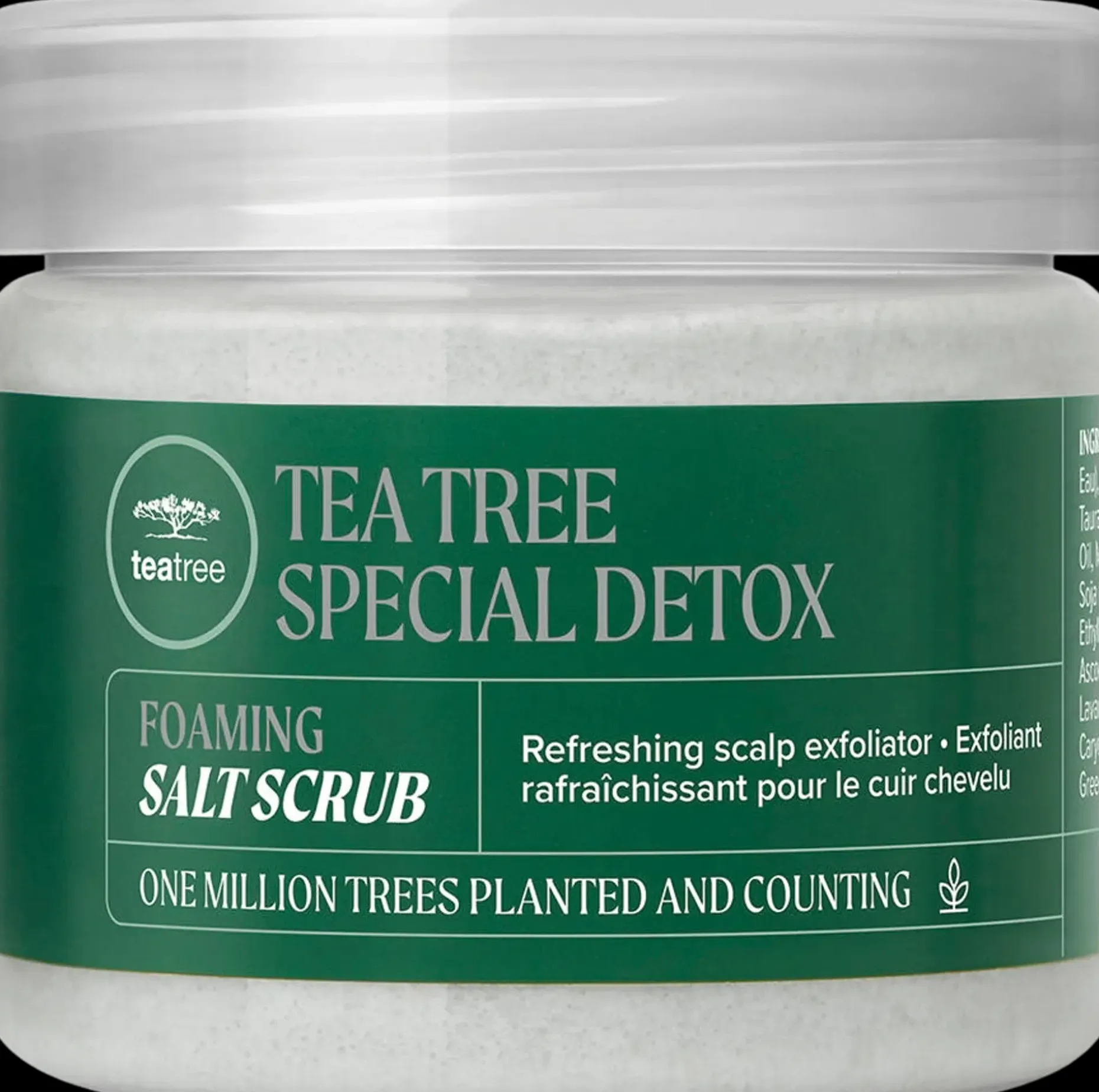 Paul Mitchell Tea Tree Special Detox Foaming Salt Scrub on syväpuhdistava kuorinta hiuspohjalle ja hiuksille. Runsaasti vaahtoava kuorinta poistaa epäpuhtaudet välittömästi. Tuotteen koostumus sisältää vulkaanista tuhkaa, Himalajan ruususuolaa ja vihreää savea. Tuote kuorii hiuspohjaa ja poistaa tuotejäämät, kuolleet ihosolut sekä ylimääräisen talin. Jättää hiuspohjaan virkistävän tunteen.