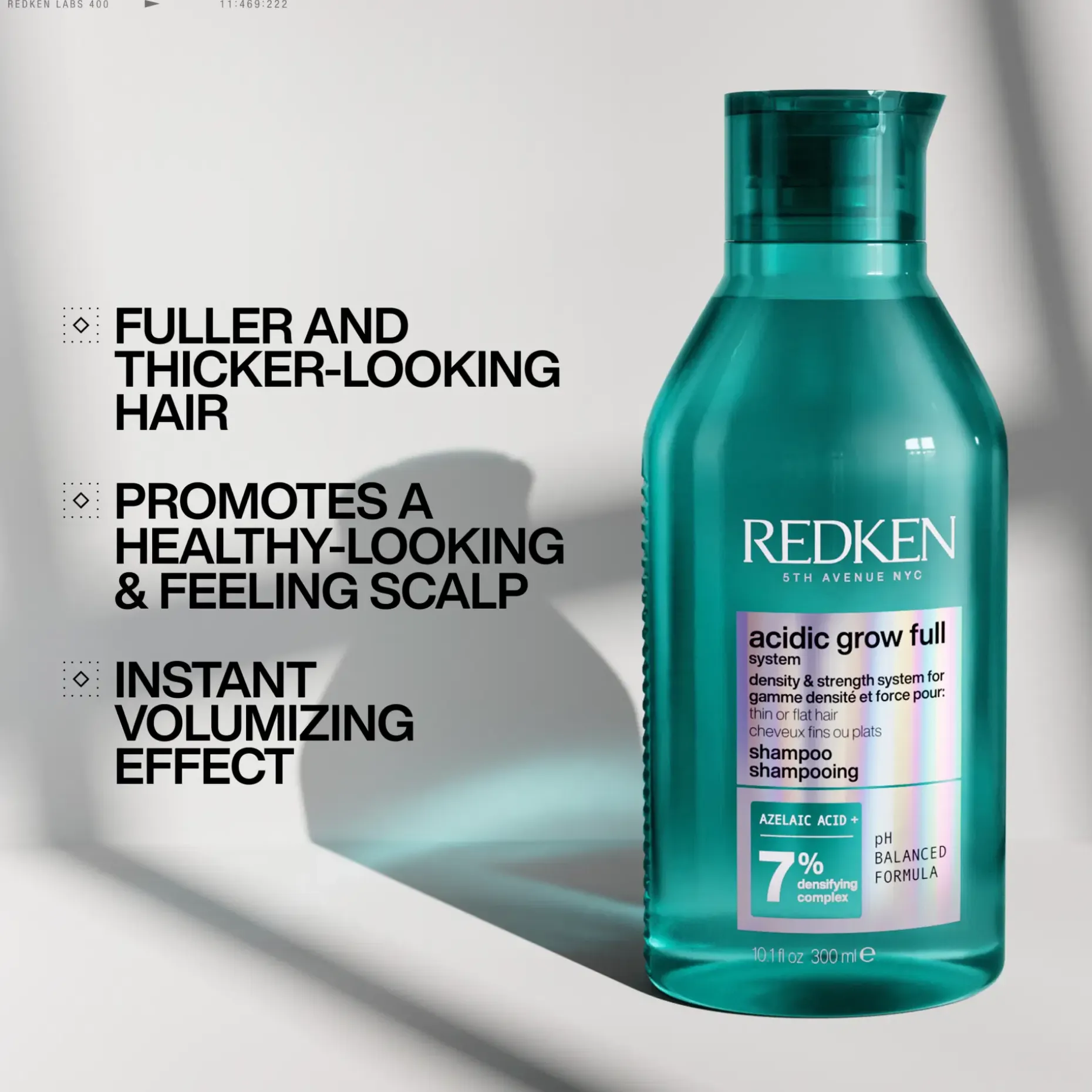 Redken Acidic Grow Full System tuuheuttava shampoo, täyteläisemmän näköiset hiukset. Antaa tuuheuden tunnetta oheneville tai latistuville hiuksille. Välitön tuuheuden ja hiuksia selvittävä tunne.