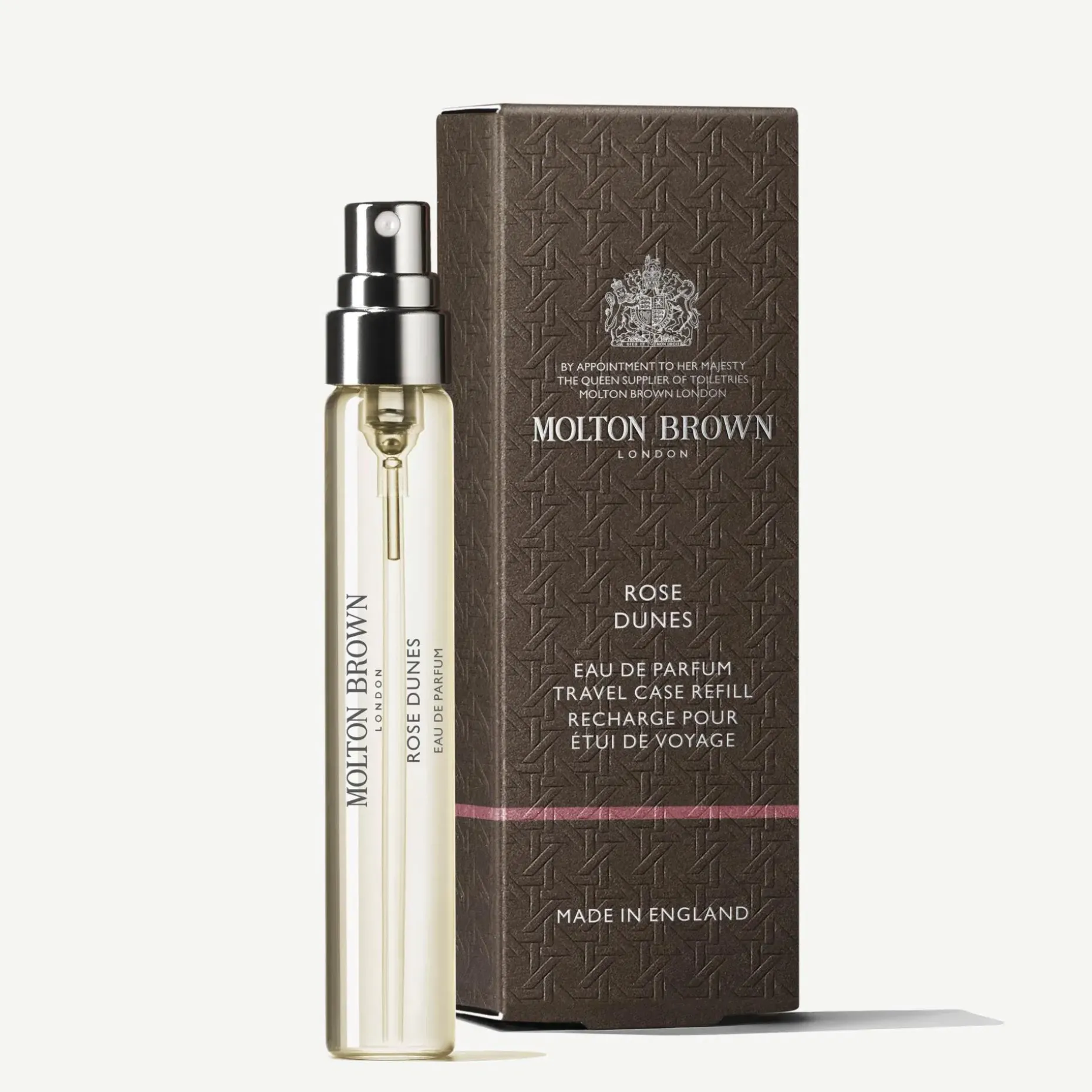 Molton Brown Rose Dunes EdP Travel Case on täyteläisen kukkainen ja meripihkainen tuoksu, joka avautuu sahramin mausteisilla nuoteilla edeten sametinpehmeään, ruusuiseen sydämeen ja lopuksi syvään oud-pohjatuoksuun. Tuoksun signatuurinuotti on sulawesi-patsuli, joka antaa hienostunutta syvyyttä ja eleganssia.