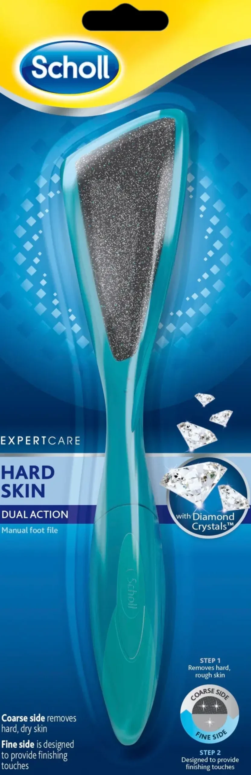 Scholl Dual Action jalkaraspi poistaa kovettuneen ja karkean ihon, jättäen jalat pehmeiksi jo ensimmäisellä käyttökerralla. Karkea puoli poistaa kovettumat tehokkaasti ja hellävaraisesti, kun taas toinen puoli viimeistelee ihon silkinpehmeäksi. Muotoilunsa ansiosta tällä raspilla tavoittaa myös kaarevat pinnat esim. kantapään vaivattomasti. Kuiva ja karhea iho voi johtua monista asioista, kuten huonosti istuvista, hankaavista kengistä, herkästä ihosta tai jopa lämpimästä säästä kesäkuukausina, jolloin iho kuivuu ja halkeilee.