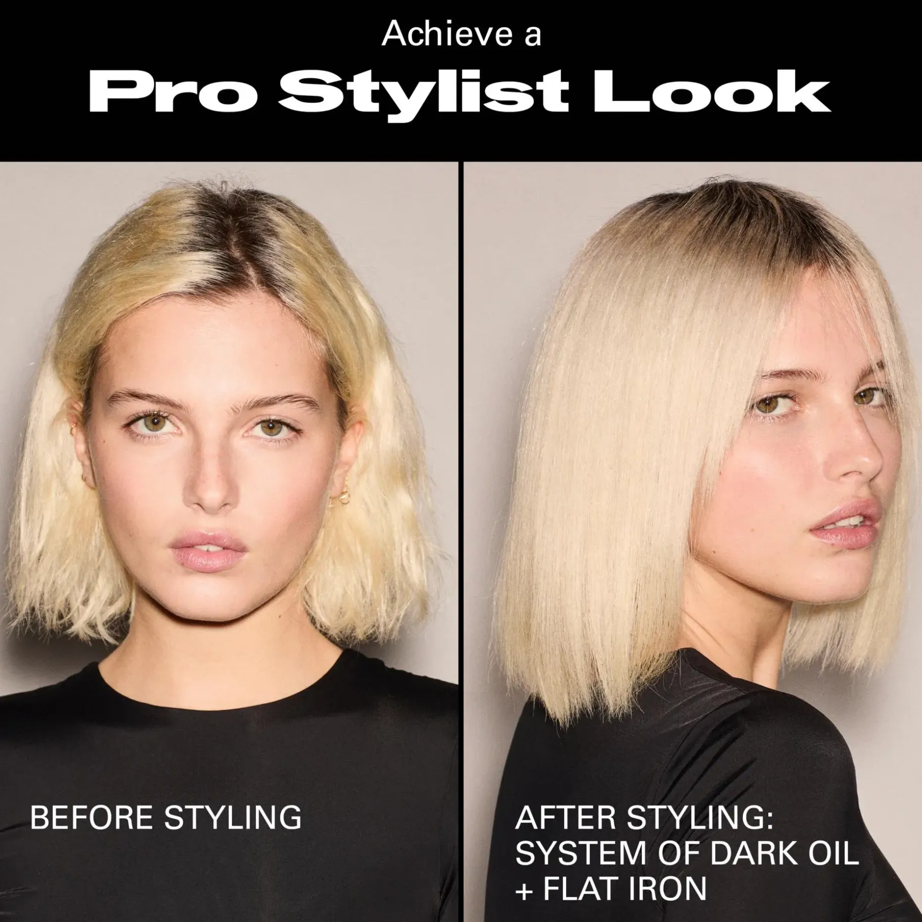 Sileän ja kiiltävän lopputuloksen saavuttamiseksi levitä 1–2 pumppausta Sebastian Dark Oil -öljyä pituuksiin ja latvoihin kosteisiin tai kuiviin hiuksiin ennen muotoilua.