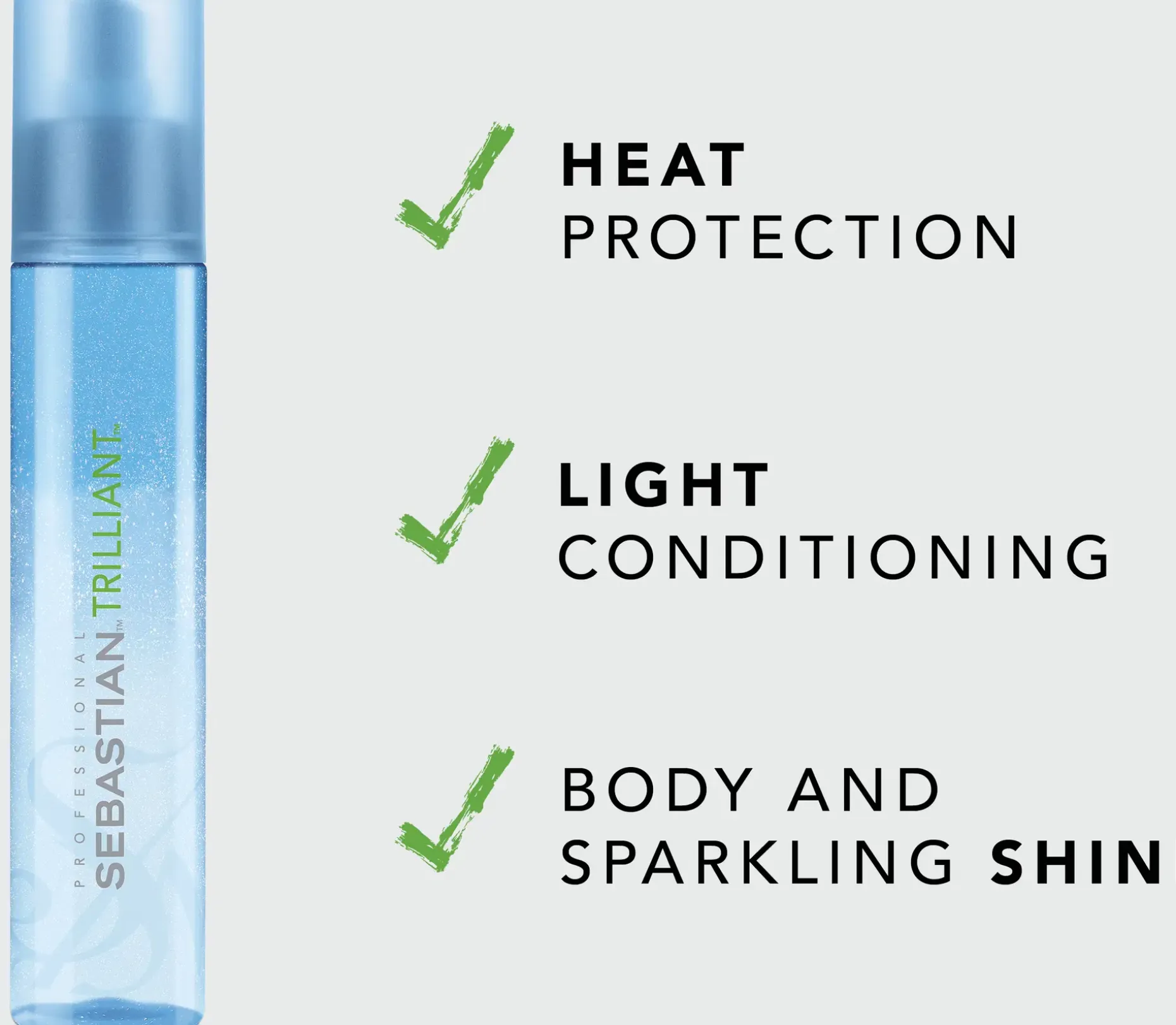 Sebastian Professional Trilliant on kiiltoa ja lämpöä suojaava suihke kaikille hiustyypeille. Tämä kevyt kiiltosuihke sisältää vuorikideuutetta, lämpösuojaa ja hohtoyhdistettä, joka hoitaa hellävaraisesti, antaa tuuheutta ja lisää kiiltoa.