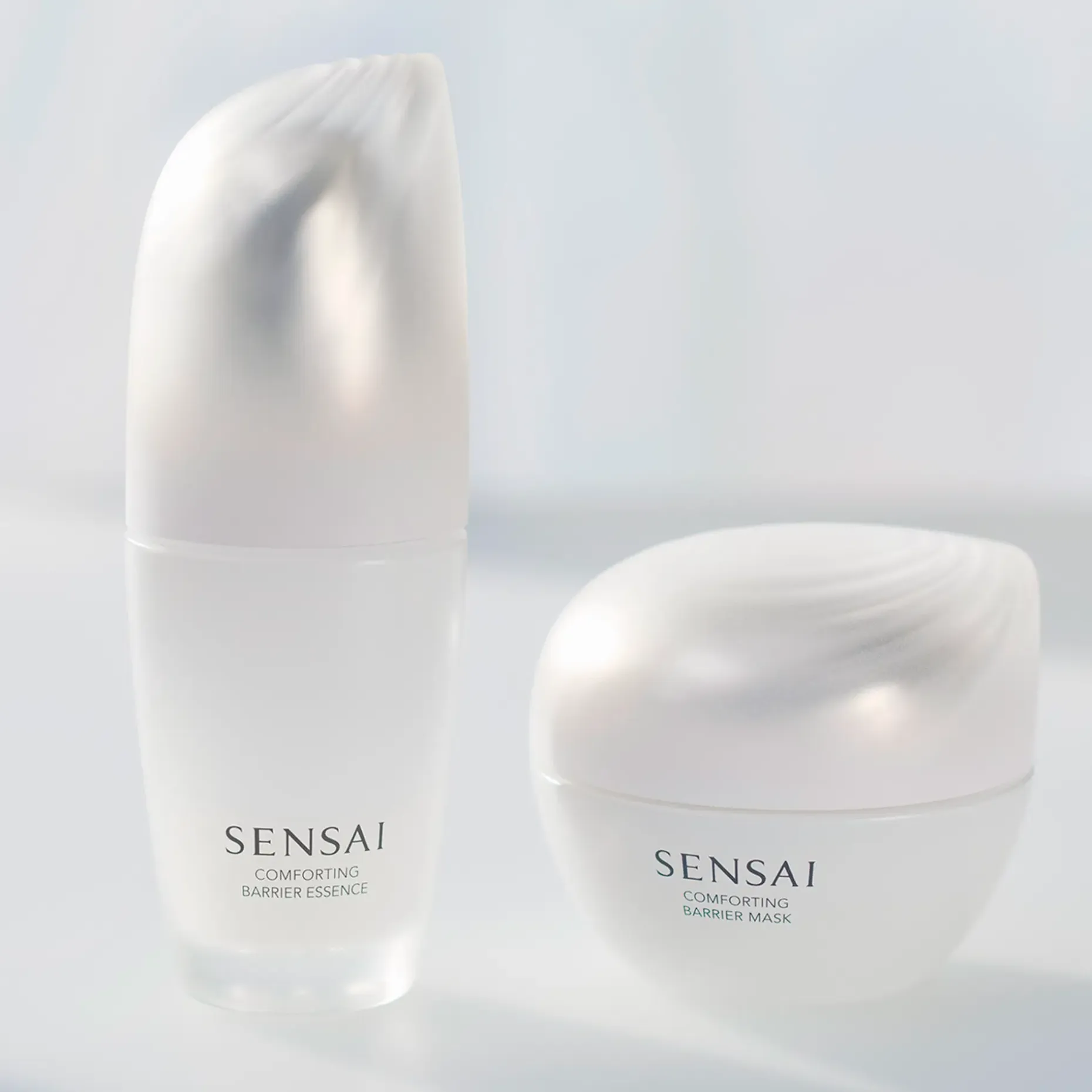 Sensai Comforting Barrier Essence 40 ml on herkän ja hauraan ihon korjaava ja tasapainoittava seerumi. Se vahvistaa ihon luonnollista suojamuuria, rauhoittaa punoitusta ja estää liiallista kosteuden haihtumista ihosta. Iho on vahvempi, joustavampi ja rauhoittunut. Seerumia käytetään puhdistetulle iholle aamuin illoin hoitoveden jälkeen ennen voidetta.